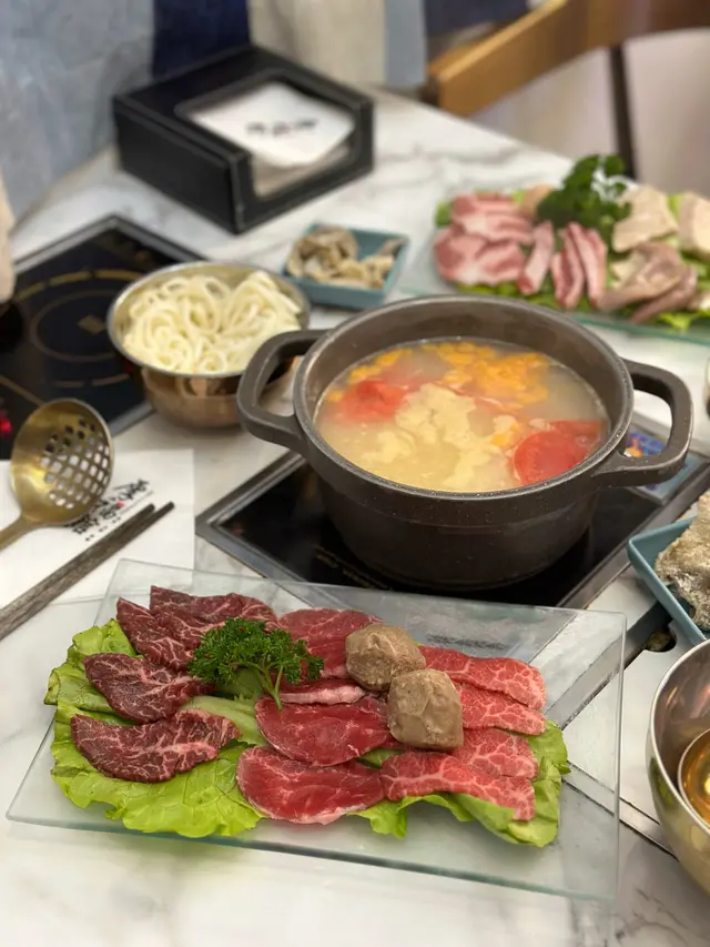 一人一鍋最平都只係$68 !!總共有11款套餐、13款湯底、12款麵食可以自由選擇👍🏻🐮手切牛魔王 $78封門柳、牛頸脊、金錢展各4片由薄至厚 但我個人反而最薄嘅封門柳仙頭手丸好juicy 又唔太蘇🐷天篷元帥 $78豬肋條、豬粉腸 各3件;第一刀頸脊、潮州肉餅 各2片;鹹蛋豬丸、梅菜豬丸 各1粒個人最得意係似潮州肉餅 似薄嘅貢丸 幾好食😋-湯底蕃茄薯仔豬骨湯🍅 入面真係有蕃茄同薯仔🥔清清地當湯飲都唔錯 我自己都飲咗唔少😝鹹菜胡椒豬肚湯🧂胡椒味都幾重 就咁飲可能會太鹹 但做火鍋湯底就啱啱好 煮烏冬嘅時候非常入味-由火鍋料、湯底到麵食都可以自由配搭每個套餐都包左2片生菜🥬小食同飲品呢個價錢包裝咁多嘢食 都幾抵食!…查看更多
