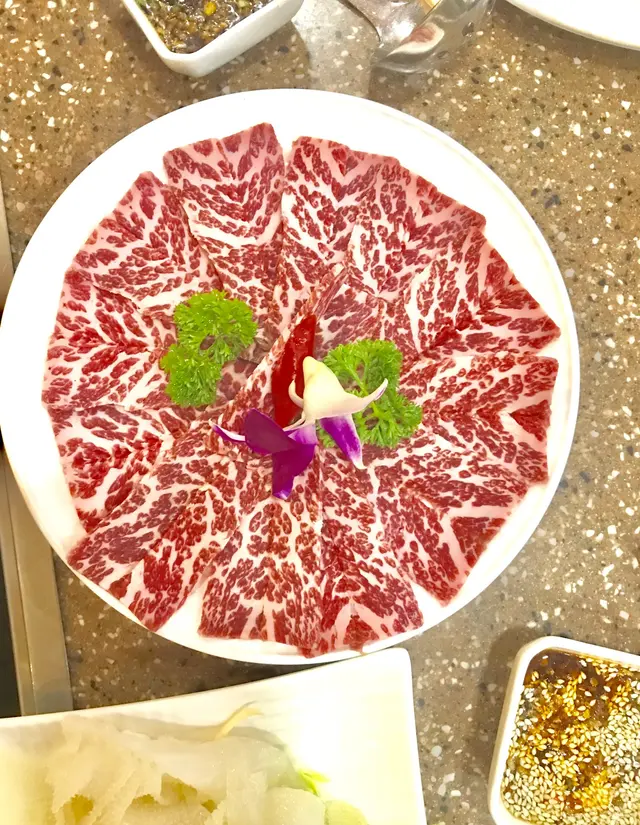 大角咀這間火鍋店經常都有大角咀街坊點名贊好。住在附近不久,平時聽人贊都聽到我「心郁郁」,今日決定來試試看。餐廳裡面抽風十足,冷氣又夠,食完不會一頭煙。枱面闊寬,坐得舒服。食材選擇多,平時食開的這裡都有,更特別的是這裡有刺身提供,食火鍋還可以食刺身,一次過滿足兩個願望。打得邊爐當然有酒飲。沙嗲駌鴦鍋$78因為同得朋友想食沙嗲,而我又想食清少少,駌鴦鍋就最適合不過。手切頂級牛頸脊$148打邊爐怎少得了牛,點了個手切頂級牛頸脊,不但賣相一流,連水準都一流。牛肉肥瘦分佈均勻,入口鬆軟得來又有咬口。一碟的份量已經好多,夠兩個人食有餘。黑松露新鮮雲吞$58這個比較特別,平時打邊爐見不到。黑松露配雲吞原來可以好夾。黑松露味看,雲吞裡面的鮮蝦又大又爽甜!粒粒圓滾滾的!脆鯇魚腩$58片片都超脆超爽口,滾多久也不會散開,看得出來非常新鮮。魚肉甜美不止,還咬口十足。牛栢葉$38不用多說,也是新鮮。牛栢葉好吸湯,打邊爐一流。水魷魚$38爽脆肉厚!蟹籽墨魚滑$75打邊爐必點,可以自己根據個人喜好按大小放入鍋中,肉質彈牙,肉料十足。最後當然得食點澱粉質,烏冬是不錯選擇。這間火鍋點價錢合理,食材肉料新鮮,難怪街坊都一致好評。…查看更多