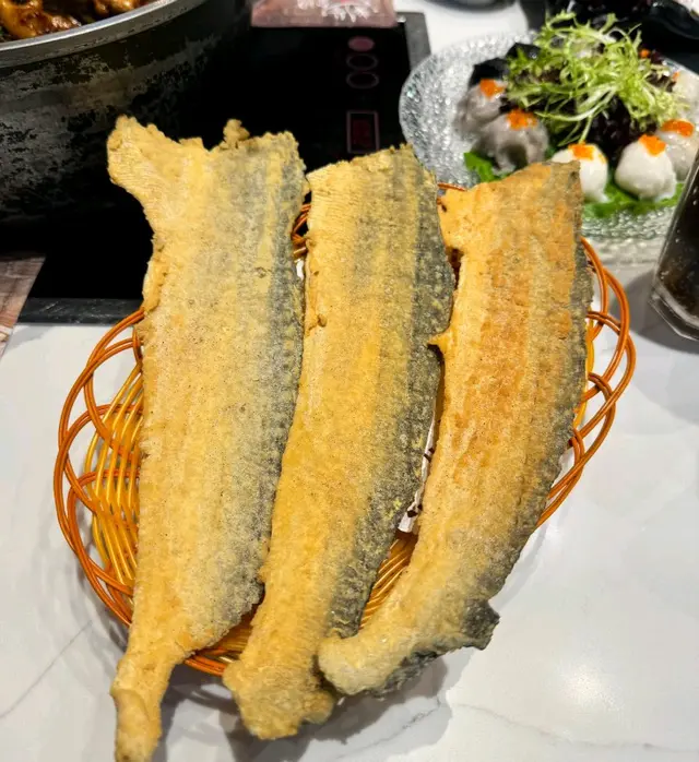 每次想食雞煲就會諗起石門呢間豐鍋雞煲🤤🤤佢既雞煲同用料都好正😋#滋潤椰子雞煲 🥥🥘❣️用左一大個椰青加落去,仲刮晒啲椰子肉一齊煲~湯夠清甜🤩fafafoodie 飲左4碗湯😗新鮮雞肉嫩滑又有雞味👍🏻仲有好多又大又粗嘅竹笙😍呢個椰子雞煲真係必試HKD198#頂級雪花肥牛 🥓❣️應該係屬於牛板腱位置😙肥瘦均勻👍🏻牛味都好出🤤比起牛小排佢係薄身少少HK118#自家炸響鈴 🫔❣️即炸響鈴上枱時仲熱辣辣,大大件好鬆化😚佢仲有芝士/紫菜響鈴都係即叫即炸架~HKD59#手工即炸魚皮 🐟❣️大大片炸魚皮係豐鍋既手工之作,好似真係冇見過第二度有,真係枱枱必點‼️好似搵熨斗燙直左咁🤪即食或浸湯都好正😊HKD54#手工四寶丸 🦑🦐🐟🍢❣️手工四寶丸有墨魚丸/蝦丸/鯪魚丸/墨汁墨魚丸,全部都好彈牙,fafafoodie唔小心跌左粒墨丸落枱時竟然有回彈😲啲丸仲好真材實料,唔係溝好多肥豬肉個啲丸🫣真係有好多墨魚粒🤩讚HKD89#白鱔片 🐟白鱔新鮮,肉質爽口彈牙,仲有啲油脂香~不過要小心細骨呀😉HKD102醬油費 $8p.p.加一服務費#豐鍋雞煲#fafafoodie_石門…查看更多