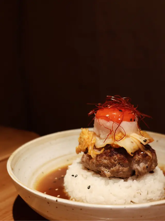 觀塘的工業大廈一直是不同餐廳臥虎藏龍的地方,這夜來到用木為主調的日式餐廳,一嚐手打牛肉漢堡扒。點了主推的兩款牛肉漢堡扒丼飯,可自選醬汁及配料。上菜時亮橙色的蘭王蛋黃+白蘿蔔蓉+漢堡扒+自選配料+飯及汁由上到下層層疊,把視覺效果拉滿。手打和牛漢堡扒丼飯 $151秘製漢堡汁有柚子酸甜味,加上泡菜好開胃清爽,配肉吃十分適合。蘭王蛋黃又香濃,也當醬汁吃了。和牛漢堡打得肉質鬆軟棉滑,牛肉香味十足,適合留在口腔中慢慢品味才吞下。手打芝士安格斯漢堡扒丼飯 $133白味噌內混了奶滑忌廉,店員推薦配搭芝士安格斯牛及芥辣酸瓜為最合適。看似不搭,我又不喜歡芥辣,都有品嚐到。沒想到芥辣混了酸瓜後竟然沒了討厭的刺鼻感,只有一點點辣。手打安格斯漢堡扒內有半融芝士醬好邪惡,牛味更濃郁,肉質爽滑彈牙,這種配搭真的不能輸。芝麻雞翼 (加$18) 一直是我最喜歡的雞翼煮法,香脆外皮加上芝麻香及嫩滑多汁的肉,正。白桃烏龍 (加 $15) 以日式金屬小茶壺裝著,附有小茶杯,除了很有傳統和式風味還能保溫。茶散發淡淡桃香,清新又解膩。熱柚子蜜 (加$5) 好足料,用了多匙柚子醬,每口都喝到柚子皮。精緻的日式手打牛漢堡丼飯,又好看又好吃,滿足。…查看更多