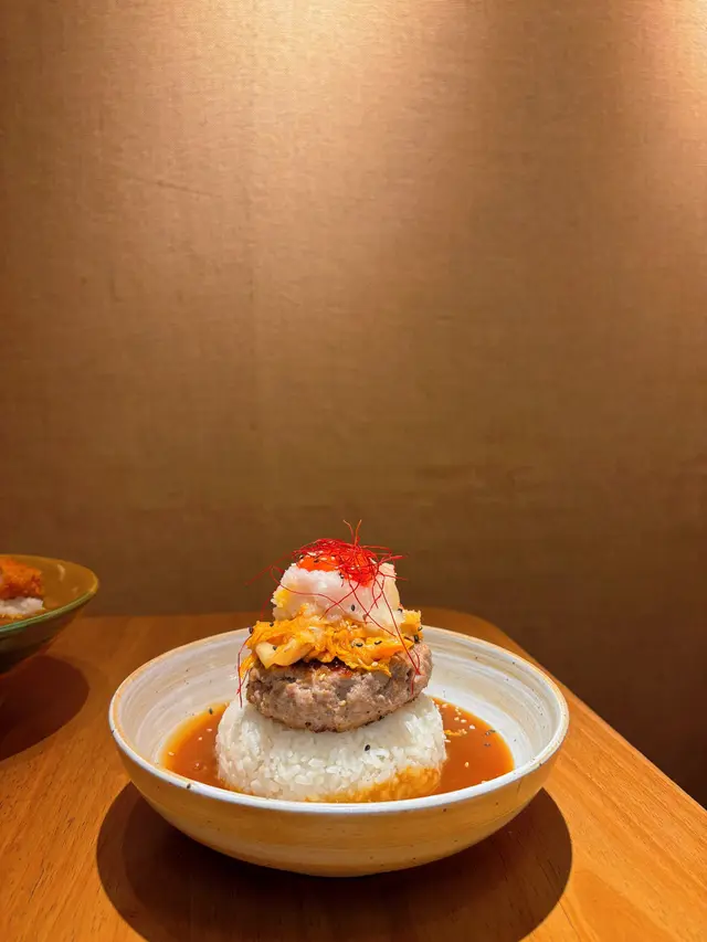 裝修係日式木系,燈光柔和,位置都鬆動,仲有小籃子放袋🧺,好貼心💕店員既服務都好親切,而且食飯上菜速度都好快👍🏻▫️手打和牛漢堡扒丼飯🍛店員話呢個係廚師每日手打架,醬汁同配料都有得揀。-白味噌汁+芥辣酸瓜漢堡肉質勁鬆軟好味,配埋酸瓜勁清新,醬汁唔會太咸,整體所有野配合埋口感好豐富。▪️ 照燒雞扒沙律🥗雞扒嫩滑,燒完既雞皮好香😌沙律菜好新鮮,份量好足夠。▫️雞皮餃子用雞皮做餃子皮,包好再炸到脆卜卜,入面仲保持到肉汁,又脆口又多汁😋😋…查看更多