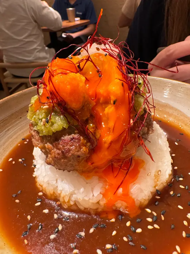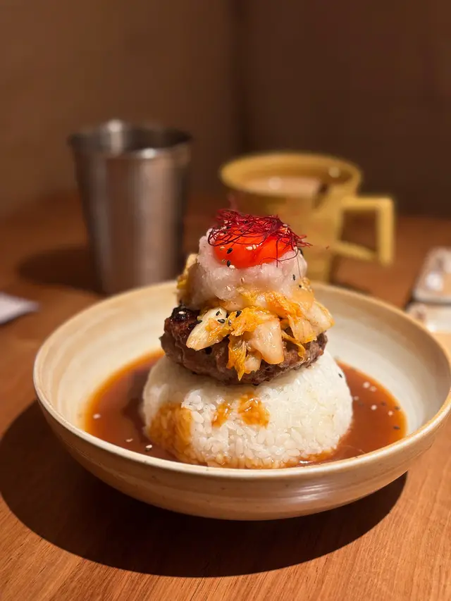 今日又同大家去觀塘捐窿捐罅食野。今次就嚟到成業街東廣場附近。呢度以手打和牛漢堡扒為主打既小店,而呢度亦有賣各類日本丼飯。今次我同朋友都叫左手打澳洲和牛漢堡扒丼飯,上面仲放左一粒蘭王蛋黃,賣相幾吸引🤩。丼飯仲可以配埋自己喜愛既醬汁同配料。小店就係蛋黃同漢堡扒中間放D配料。店員推薦和牛漢堡扒丼配日式泡菜同漢堡汁。香濃既和牛漢堡配上甜甜地泡菜,同甜甜酸酸既醬汁,食落幾開胃👍🏻!我就點左「手打芝士安格斯漢堡扒丼飯」。安格斯漢堡扒,扒中有半浴既芝士醬,幾邪惡😃。店員建議我地配白味噌汁同芥辣酸瓜,可以帶點清爽既感覺。油脂豐富既漢堡扒配上粒粒飽滿既日本米,食落幾滿足😌。兩款醬汁開胃惹味,送飯都唔錯👍🏻。當然配埋隻蘭王蛋黃會更甘甜。總體嚟講味道都唔錯,呢度仲有其他日式丼飯,大家都不妨嚟試下~…查看更多