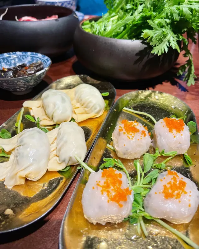 《招牌花膠雞湯鍋》滋潤一下,有好大塊雪魚花膠,仲有半隻新鮮雞,肉味香濃,肉質爽脆!花膠滾大約四分鐘就食得,滿滿膠原,而湯底濃郁得來係鮮甜無味精感。🐮蘋果木煙燻手切牛頸脊蘋果木煙燻令牛肉帶甜味香氣,牛頸脊是牛隻活動最多的部位,脂肪較少肉味濃,而且厚切入口更有口感。🐽黃沙靚豬潤新鮮豬潤入口爽脆又唔會有苦味,高蛋白又低熱量,多吃都無問題。🦀黑松露蟹肉餃餃子係餐廳新鮮製作,趁住食蟹嘅季節,梗係食黑松露蟹肉餃!餃皮夠落又夠滑,煮熟後透徹出肉餃內涵。有淡淡黑松露,反而蟹肉味道更特出,肉質彈牙紮實,無肥肉,真材實料。🦐手打蟹籽鮮蝦丸蝦丸爽甜彈牙,有質感嘅蝦肉粒粒,食落有層次,無過多調味,所以火鍋食到鮮原味道。🤍白鱔片肉質雪白有光澤,爽甜脆口,鮮甜無骨,魚皮仲好彈牙。🎋自家製竹蔗茅根~ 清甜足料,解熱氣。…查看更多