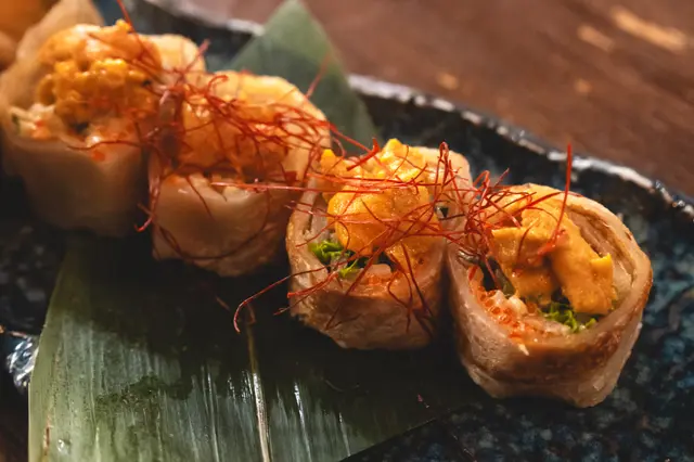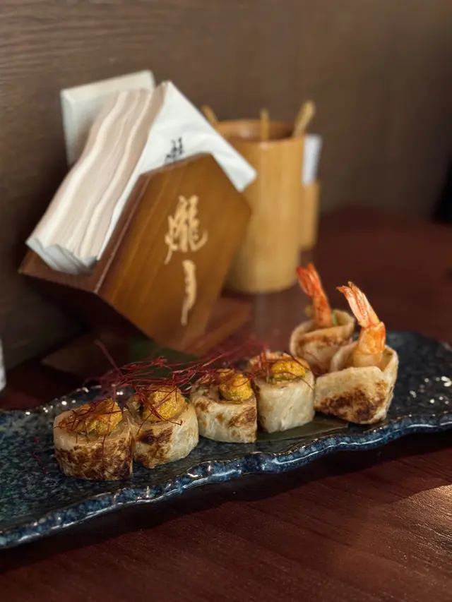 又到了食串燒飲啤酒既日子今日就黎左同事介紹既尖沙咀呢間座位非常舒適,仲有d私人空間酒櫃既酒亦非常多種類,指定清酒例如越後櫻呢d仲有半價梅酒梳打特飲前菜係五切三文魚刺身,諗唔到,黎既係腩位,仲要價錢勁平…48蚊咸牛肉明太子燒饅頭咁特別既野一定要點黎試,外皮微脆,內餡有明太子既咸香,入口有心理作用有ddd辣感係一款好適合配酒既小食!個餅皮唔算厚,帶少少嚼口,海膽同蝦做餡料真係幾奢侈!但味道食落居然比較收斂,海膽幾鮮味,蝦爽口,整體配合很好,值得一叫。跟住就係一連串既串燒喇!必須一提就係,佢有一個menu係44蚊同款兩串,雞軟骨阿肥牛燒果d要點名讚既係羊皮,燒得非常香脆,有燒焦既油脂香味,同埋咬落有我最愛既羶味另外就係本菇牛肉卷,牛肉唔算厚,但味道主角係菇,呢個要叫!柚子雞肉串香氣清爽,,酸香唔算好誇張,幾自然,雞肉超嫩,呢個甜酸咸既配搭永遠輸唔到菠蘿係一定要叫好多串,燒過後甜度提升,外邊有輕輕既脆焦香,超級正熱騰騰冒哂煙既鍋上枱了!海鮮湯底飲落一定都唔會渴,有大大粒帶子,仲有蠔粒蠔仲要係煮完都幾大隻,少許粉絲,吸哂湯既鮮味,暖胃,舒服…查看更多