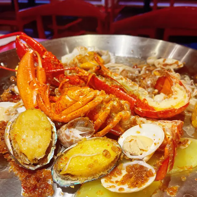 自己對任食火鍋一向無咩好感,不過呢間潮式任食火鍋改變左我少少睇法,環境同食材都好好。潮州鹵漢大飯店以紅色為主調,無論牆身、傢俬同天花一律紅色。環境都好寬躺,而且好乾淨,完全唔似平時任食火鍋餐廳既環境🤩我地試B餐,由於7點前入座,價錢只係$238。套餐包括手搖海鮮袋同任食火鍋。- 手搖海鮮袋職員等我地打卡之後先幫我地將海鮮同醬汁撈埋。入面海鮮包括鮑魚、龍蝦、帶子、東風螺同蜆、海鮮大部份都高質素,龍蝦肉質就比較鞋,但沾上蒜蓉醬就變得惹味。東風螺同蜆既數量好驚人,食極都仲有🤣。配料仲有萵荀、栗米同金菇。食完海鮮袋就可以打邊爐,湯底有六款,我地㨂左潮仙沙茶鍋,味道唔算太鹹幾適合香港人口味。食物質素對比其他任食火鍋更加出色,估唔到有幾款食材唔駛加錢都係可以任食,包括爽口蝦滑、響鈴、潮州牛肉。所有食材都新鮮乾淨👍🏻套餐可以任食特式小食,其中香芋地瓜球同潮式反沙芋最令人印象深刻。雖然地瓜球唔算熱辣辣,但外脆內軟,味道香甜。另外仲有鹵水五花腩同咖喱牛筋。由海鮮袋、火鍋到特式小食,所有食物都幾好味,自己又坐得舒服,以後朋友gathering話食火鍋,我應該唔會再抗拒🤣…查看更多