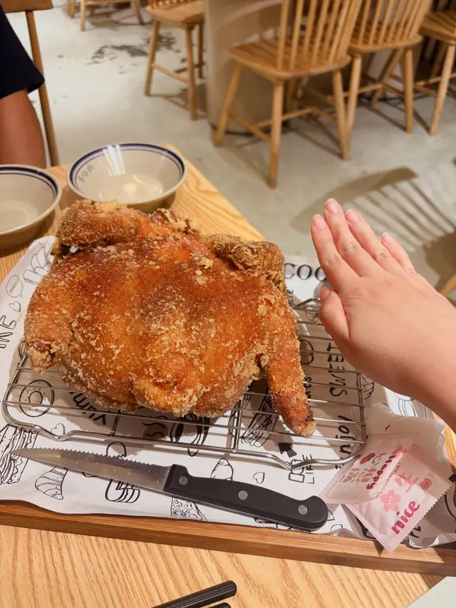 🍗手撕巨無霸炸全雞($198)炸雞可以揀半/全隻,上枱真心超!巨!型!一定係即叫即炸,上枱勁度辣手🔥炸雞外皮係好酥脆帶椒鹽味,撕開好多雞汁同雞油,好嫩滑,就算係胸位都唔嚡,係小編心目中juicy雞嘅No.1(No. 1仲有薔紅燒春雞😙),呢隻更加啱多啲朋友share食!🐣麻油雞湯飯($76)絕對唔油,麻油味好香,配白飯真係好好食😙不過雞肉就麻麻~16:00仲任飲冬瓜茶同綠茶,小編星期日晚去見佢生意都唔算話旺,大家可以支持吓小店🥹…查看更多