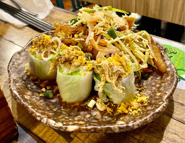 軟殼蟹黃薑飯軟殼蟹外脆內軟,黃姜飯唔會太濃郁,又唔會太油膩,始終都唔係個個接受到,但佢整到好易入口又充滿風味。三鮮PHO係生蠔生蝦滑雞配椰汁酸湯檬粉,生蠔好滑嫩,蝦肉彈牙,雞肉鮮嫩,湯底酸辣鮮甜!牛豬蕃茄湯檬酸甜開胃!番茄湯熬得好濃郁,牛肉同豬扒軟嫩入味,每款都同番茄湯好夾。芝士蝦多士好邪惡㗎!流心芝士蝦多士脆卜卜,鬆化。越式春卷春卷皮炸得香脆,餡料實在又飽滿,有紅蘿蔔木耳椰菜粉絲,餡料塞滿哂,每啖都好滿足。…查看更多