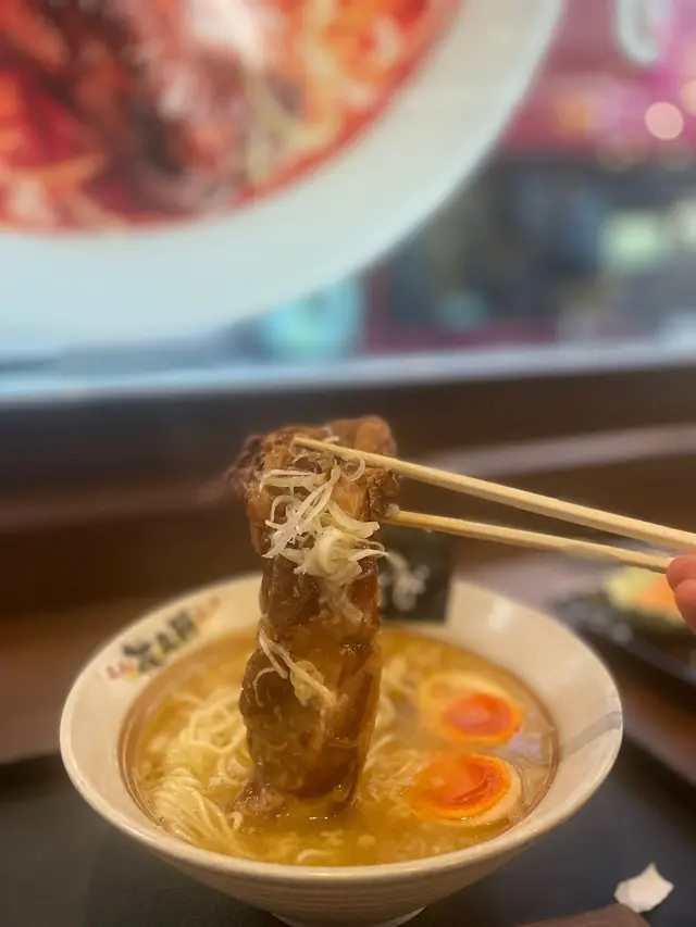 拉麵之旅來到中環,見到這間過江龍主打豚骨湯底,又有老公最愛的豬軟骨就入去試一試!店舖頗大,坐得舒適,而且乾淨。【叉燒魚介豚骨沾麵】魚介與豚骨湯底融合得恰到好處,濃郁但不油膩,伴隨著淡淡的海鮮香氣,最喜歡湯底熱辣辣。叉燒厚實而軟嫩,脂肪比例均衡,入口即化。冰凍的沾麵的麵條彈牙有勁,每一口都能掛滿濃湯。 【招牌原條豬軟骨拉麵&溏心蛋】豬軟骨經過長時間慢煮,口感軟糯卻不失筋道,膠質豐富,入口即化。湯底濃郁香滑,充滿背脂粒,散發著濃濃的豚骨香氣,與溏心蛋的甘香完美搭配。蛋黃流心柔滑,鹽味適中,為整碗拉麵增色不少。【天婦羅紫菜魷魚鬚】魷魚鬚外層包裹著酥炸紫菜,炸得金黃酥脆,口感香脆不油膩。魷魚鬚有嚼勁,搭配紫菜的鹹香,層次感十足,沾沾蛋黃醬非常合適。 …查看更多