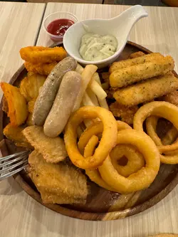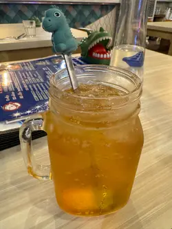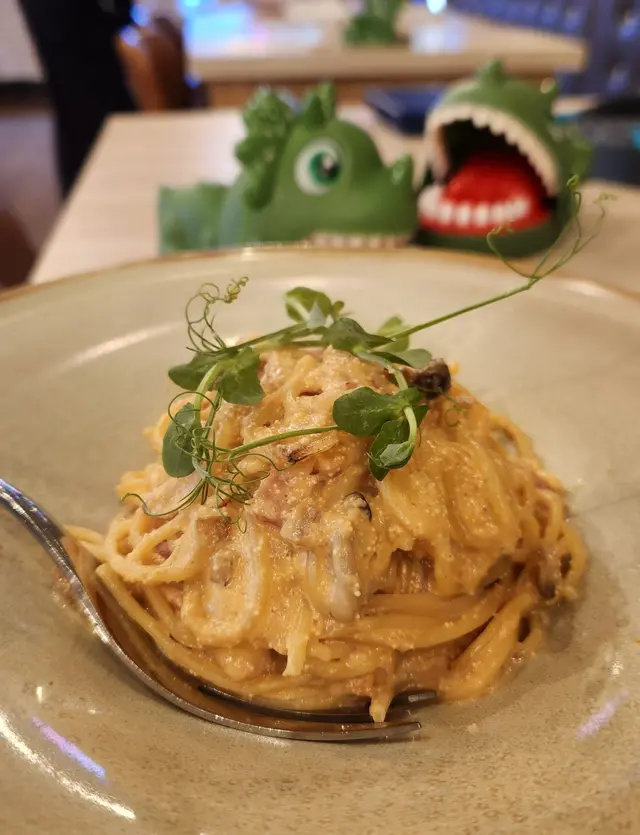 今晚放工同朋友到尖沙咀食晚餐,朋友說之前跟小朋友來過呢間以恐龍為主題既餐廳、cafe…食物質素好好而且空間感又大,又舒適,所以我地今晚就去左呢間位於厚福街既Dino Cafe恐龍餐廳。餐廳內內外外都會見到好多唔同既恐龍公仔、裝飾、board game等等,充滿童真,一進入餐廳好似立即放鬆了,輕鬆一下,開開心心食返餐好既。呢度又有得食又有得玩,大人小朋友都好歡喜。餐廳是西式餐廳,有多款意粉、pizza、小食、前菜、甜品、飲品⋯⋯仲有個2人餐,咁就唔洗煩惱。仲有一些輕食能量餐,又輕量一點,又健康。仲有兒童餐。所以呢間餐廳既野食真係應有盡有。我跟點了點了幾款美食一同分享。野飲方面點了一杯蘋果梳打,好解渴好好飲,而且仲有恐龍樣的攪拌棒,十分cute。朋友點了招牌水果茶,相量夠份量,大大壺,而且仲有個小蠟燭一直加熱著,十分貼心。水果茶又香濃又甜甜的,又新清又鮮甜。主食方面點了招牌明太子卡邦尼意粉,好濃郁既明太子拌勻了卡邦尼意粉,啖啖都食到明太子的味道,而且意粉都做得相當creamy..好好味呀。呢款意粉好惹味。另外點了一客蜜糖烤雞pizza…pizza是薄薄脆脆的pizza底,又香又脆,上面鋪了又多又濃的芝士,仲可以做到拉絲的,超邪惡。上面仲有甜甜的蜜糖烤雞、菇類,好足料又好味,pizza都做得相當出色。仲有點了一款超滿足,大人小朋友都必愛吃的霸王龍小食拼盤,入面有超多唔同款既小食,有雞翼、炸雞粒、薯角、薯條、炸魷魚圈、洋蔥圈、芝士條⋯⋯超多選擇,又大大份,即點即炸,所以熱辣辣又香口又香脆,令人食指大動的金黃色呀。每款都好好味,正過了一個輕鬆又愉快的晚上,暫時忘卻一下生活上既煩囂。…查看更多