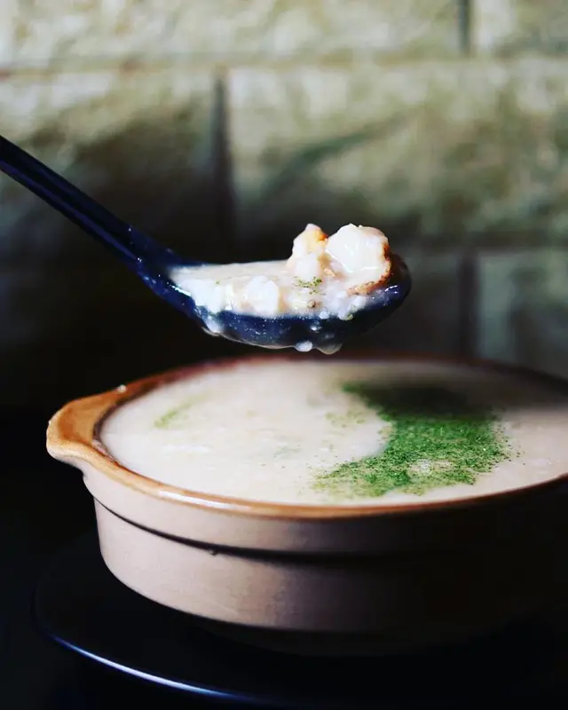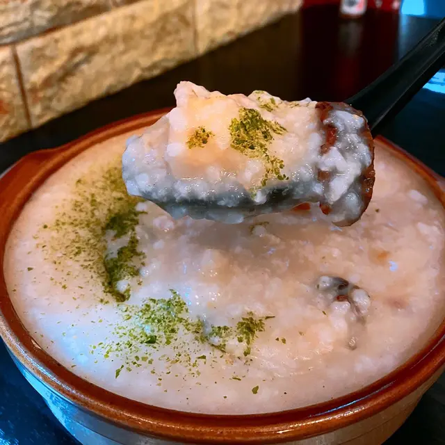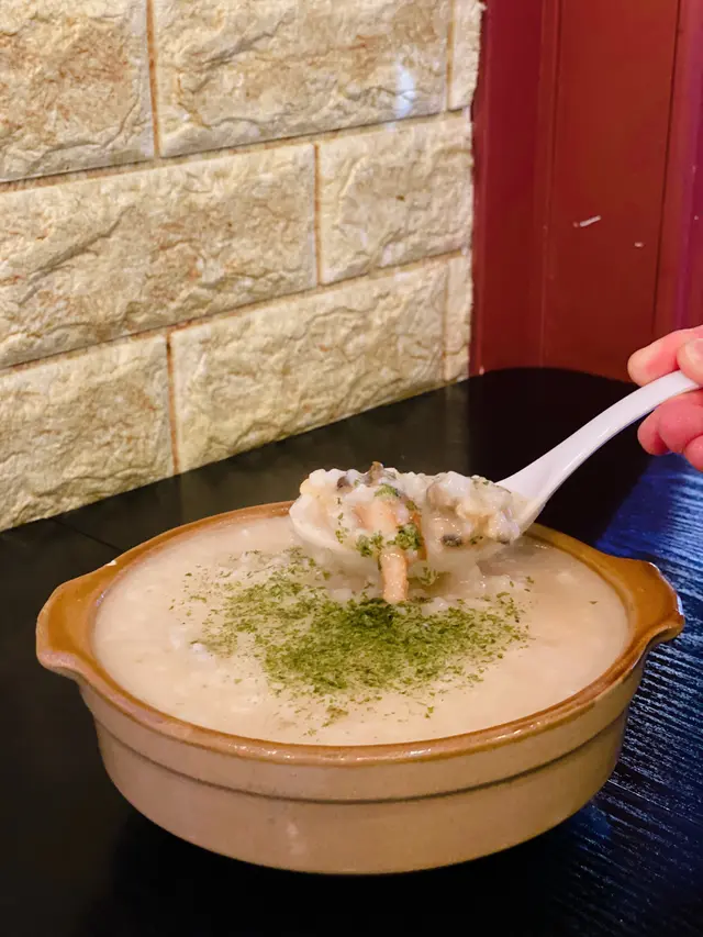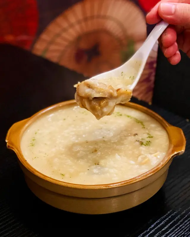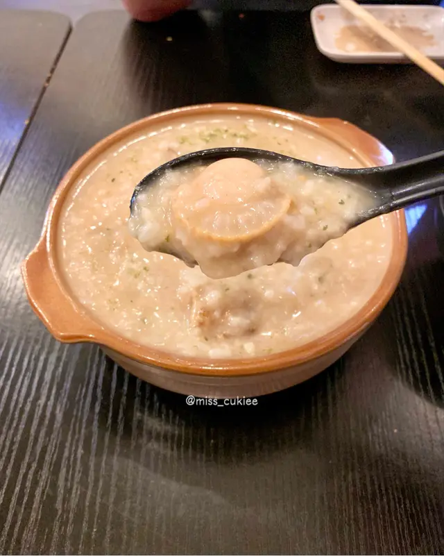 餐廳充滿日式風情 牆上掛滿日式海報同裝飾 好似置身喺居酒屋咁🏮燈光柔和放鬆 非常適合朋友聚會同小酌🍻.📌招牌海鮮砂鍋粥 $108(磯煮鮑魚, 蜆肉, 青森縣帆立貝, 日式蟹膏)*2人份量粥底濃稠綿滑 吸收晒滿滿海鮮精華 鮮甜入味✨雖然睇唔到蟹膏 但甘香味超濃郁 融晒落粥到🦀蜆肉爽大冇沙 切片鮑魚味道較淡 兩粒帆立貝幾有鮮味🦪面頭仲灑左啲海苔粉提鮮💚海鮮相當豐富 每啖粥都食到 呢個價錢真係好抵🤑.📌日本花魚一夜干 $120/半條一夜干係指將魚醃製後晾乾一夜🌬️花鯽魚脂肪含量適中 魚骨唔多 烤製後金黃焦香 肉質細膩緊實 滑嫩多汁又有鮮味🐟鹽分適中 調味恰到好處 配以檸檬汁 更提鮮又清爽🍋.📌爆醬芝士大啡菇 $68/2隻大啡菇厚肉juicy🍄🟫用火槍炙燒芝士至金黃 融晒喺表面🧀搭配埋白醬同蒜 香口濃郁🧄.📌五花腩肉串 $28/串薄片五花腩灑上蔥花, 七味粉同黑胡椒卷住燒 脂肪分佈均勻 唔肥膩🐷.📌雞腿軟骨 $30/2串用左汁燒 味道甜甜辣辣 仲帶點黑胡椒香🧂烤至金黃爽脆 釋放晒啲油脂出嚟 充滿油香 近骨位雞肉味更濃郁🐔.📌免治雞肉棒(配日本蛋) $38/串雞肉棒加入好多香草調味 香氣重左啲 蓋過雞肉味🌿混入雞軟骨增加口感 但比例過高 肉質偏乾🍗沾啲生雞蛋會順滑啲🍳.📌椒蜜安格斯肉眼串 $48/串安格斯牛肉燒得恰到好處帶微焦🔥肉質細嫩柔軟 鎖住晒肉汁 咬落真係爆汁 調味唔重 食落淡淡牛香味 完全唔油膩🐮.📌脆皮燒賣 $28/串魚肉燒賣塗上醬汁燒至金黃香脆 魚肉軟糯煙韌 比蒸燒賣更有口感層次 但有啲鹹🍢…查看更多