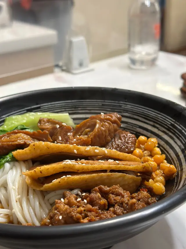 平時少入大圍,今日黎到本身想食蛋包飯,點知星期三無開🫠附近見到呢間餐廳裝修幾簡約,原來係食米線既專門店,又唔使排隊就抱住一試無妨既心態。入到去用QR code自己落單,想叫招牌滷什滙撈米線點知無晒,麥芽啤酒滷什滙飯都無😂所以就求其叫左個招牌滷鴨片撈米線同秘製豬頸肉雙蛋飯。▪️招牌滷鴨片撈米線 ($52) 另加滷豬腸 (+$7)揀左自家醬汁,湯底有驚喜,有少少辣既香味,但唔會覺得over,滷水味都好香,略帶甜味。鴨片都算入味,易咬開,只係唔算特別好食。反而豬腸好正,入味之餘唔會好肥👍🏼不過係略嫌米線碎左啲,有啲難夾同偏稔。▪️ 秘製豬頸肉雙蛋飯 ($52)個汁撈飯唔錯,豬頸肉幾惹味,唔會好肥。蛋煎得啱啱好,吉穿再撈埋啲汁加啖飯好滋味🤭▪️招牌手拉奶茶 (跟餐+$12)樽裝既奶茶幾特別,茶味幾香,唔會好甜。呢間喺區內應該算幾受歡迎,一路食見佢一路有出外賣👍🏼…查看更多