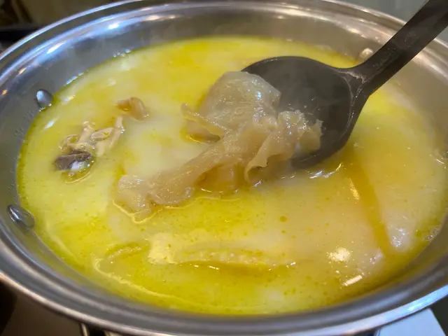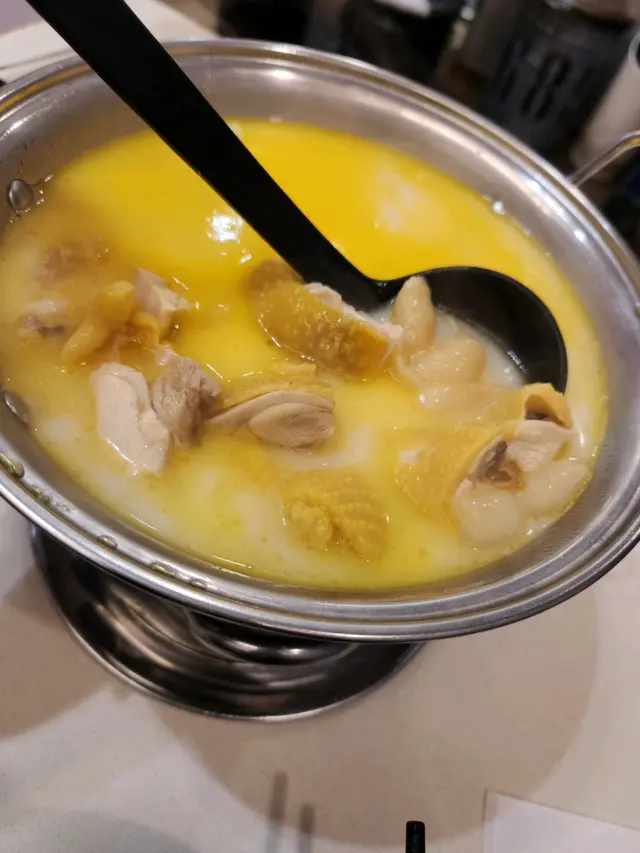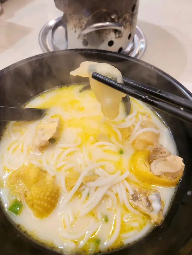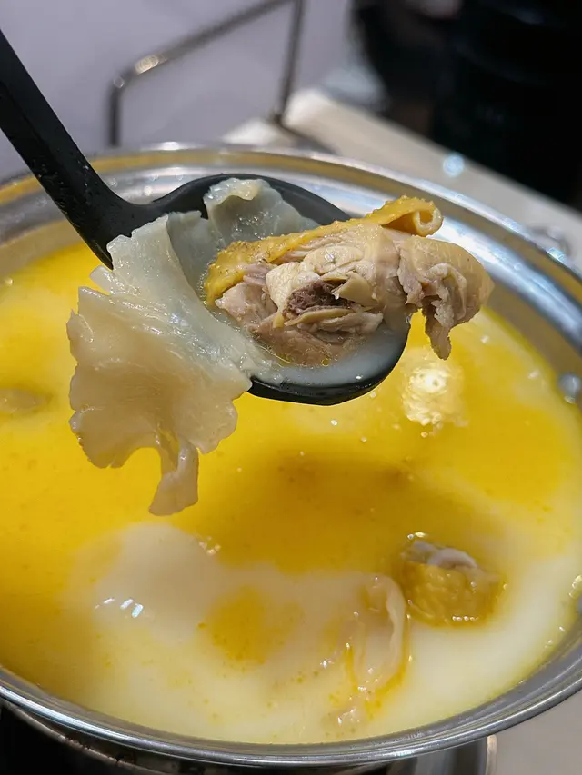 呢排癡膠花嘅人氣真係愈燒愈勁,就連🐻都被燒到,聽聞佢個Fʀɪᴇɴᴅ癡膠雞嘅人氣都好勁,所以我哋今日就去咗搵佢個Fʀɪᴇɴᴅ ,睇吓係咪真係咁好食先😙招牌癡花膠雞濃湯米線 $78我哋加咗$10轉雞髀,肉質嫩滑有雞味,湯膽係湯底呈現鮮黃色,表面仲有浸雞油,飲落係好濃郁嘅雞味,食得出係無味精嘅,而花膠就偏膠質,份量都唔少,最正係用爐上,咁就可以Kᴇᴇᴘ住個溫度喇❤️麻藥雞拌麵 $58麻油味都幾香,食落唔算好濃果隻嚟,雞件份量都算多,最正係果粒糖心蛋麻,半流心狀態,滑捋捋又夠哂入味金磚豆腐 $42酥脆嘅外層包住嫩滑嘅豆腐,外脆內嫩,調味啱啱好,點埋個泰式酸辣醬,真係一粒接住一粒總括嚟講,份量足又幾抵食,難怪係長期人龍店🤩…查看更多