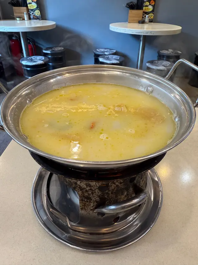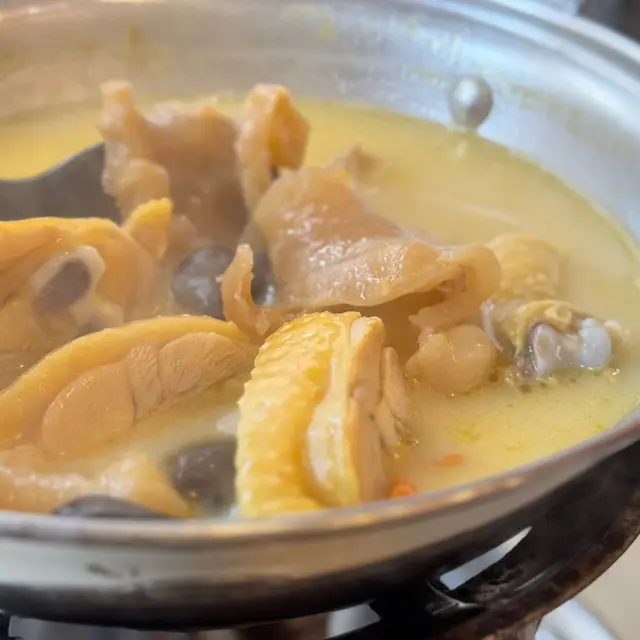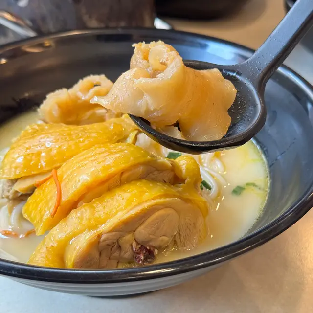 午市經過太子「癡膠雞」,店內顧客滿滿。揀選套餐,雞湯米線以熱鍋上菜,讓客人吃到有溫度的米線🫶🏻🌟招牌花膠雞濃湯米線,以其濃郁的湯底和滑嫩的米線贏得了食客的喜愛。花膠的膠質與雞湯融合,非常鮮味✨🌟藥膳黃酒花膠雞濃湯烏冬,則在傳統的雞湯中加入了藥膳元素,黃酒的香氣與藥材的溫和相得益彰,不僅美味,具有一定的養生功效✨🌟金磚豆腐外酥內軟,金黃的外皮包裹著細膩的豆腐,簡單卻惹味🤍🌟配搭雙檸樂和鹹檸七喜的清新的檸檬香氣為主調,前者帶有微妙的甜味,後者則因鹹檸的加入而多了一層複雜的口感,帶來一絲清爽下次一定要再食其他雞湯湯底😋…查看更多