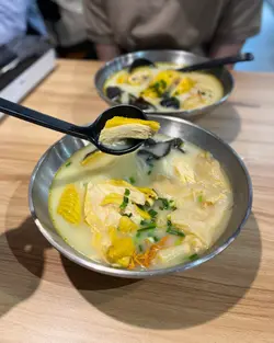 主打各式各樣雞湯米線🐔每日鮮雞熬製湯底呈現奶白色除左招牌濃雞湯外 仲有胡椒湯,麻辣湯🌶️及蕃茄湯🍅用手機掃描QR Code落單超方便📱好貼心是每張枱都提供骨盤❤️招牌花膠雞米線🐔🍜雞件選用三黃雞,約有5-6件,肉質嫩滑但雞骨比較多,花膠口感彈牙,米線爽口滑身,雞味濃郁且湯底鮮甜,飲完都唔會口渴姬松茸竹笙花膠雞米線🐔🍜湯底雞味香濃外,仲飲到淡淡姬松茸味,米線軟硬度適中,嫩滑的雞髀肉啖啖肉,花膠食落煙韌充滿骨膠原,竹笙爽口並吸盡湯精華,加入姬松茸,蟲草花及木耳等食材好足料,適合女仔養顏滋補🧏🏻‍♀️…查看更多