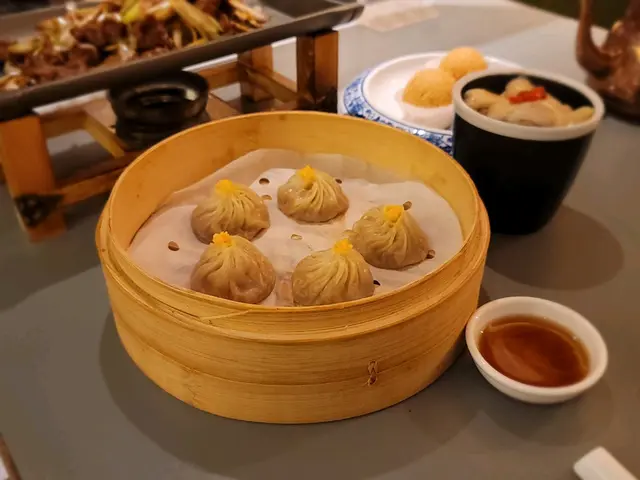 百忙之中, 終於有機會同老公去撐枱腳。今次試左尖沙咀既王家沙.花樣年華。 (5⭐️最高)招牌蟹粉小籠包(5⭐️) 入口咬落即溶化🥰🥰, 皮簿餡靚又唔易斷, 蟹肉汁入口慢慢滲出, 清甜美味🫶🏻🫶🏻。奶黃小麻球(5⭐️)3粒的小麻球, 外觀只是芝麻球,無特別。 但咬落有驚喜😋, 奶黃餡慢慢從內流出。 入口幼滑, 一點都唔黏口🥰。熊貓流沙包(5⭐️)外觀可愛, 熱熱的外皮包著岩岩熱的奶黃, 唔會太甜。 食既時候要小心一點, 否則奶黃會整污糟件衫。😅海洋蟹肉炒飯(5⭐️)無想過會用墨魚汁做飯底, 有尤魚, 青口, 蝦等, 加了小小辣醬炒😋, 好野味。 👏🏻👏🏻因為墨魚汁飯係獨立個體。 所以要跟飯一齊食, 否則會偏鹹。😅⭐️特別的- 京蔥爆羊肉薄餅(5⭐️,有4件熱熱的薄餅, 配上野味的蔥爆羊肉, 薄薄的薄餅, 包著羊肉, 因為包著醬汁, 咬落去, 醬汁係口中爆開, 好滋味💓💓黑熊珍珠奶茶(凍)(4.5⭐️)冰熊🐻係奶茶頂部, 打卡一流, 珍珠有咬口 , 唔係一咬又黐牙或者好硬。 甜度適中。如果唔係甘多冰就Perfect 👍🏻…查看更多