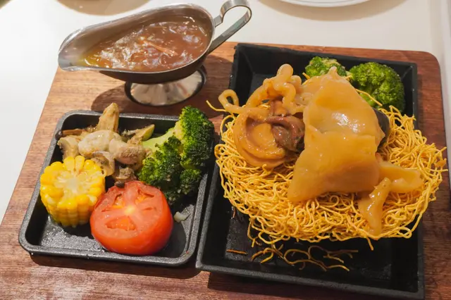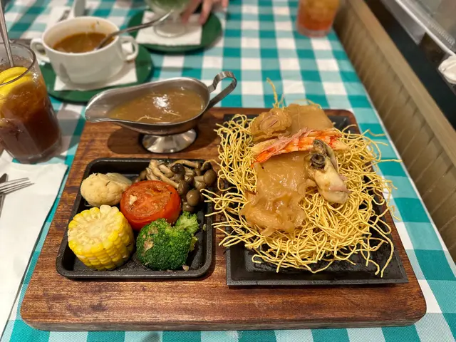 一直以為永年只有車仔麵食,原來仲有懷舊鐵板餐😲,童年回憶即刻返晒嚟🌈~揀咗慢煮鐵板2人套餐($438),包兩份鐵板、湯/沙律、2份小食、2杯飲品~揀咗「美國安格斯封門柳」🥩同「招牌鐵板佛跳牆車仔麵」,賣相幾吸引~美國安格斯封門柳揀咗5成熟,醬汁要咗永年招牌辣椒汁🌶️,牛柳都算腍同少少辣嘅醬汁一齊食都幾夾,洋蔥🧅就再煎熟啲會更好~招牌鐵板佛跳牆車仔麵:好多靚材料,冬菇非常入味,蝦乾好鮮甜,花膠同金蠔都好高質,仲有金華火腿同乾瑤柱絲😋懷舊蝦多士食完唔會成口油、好香脆👍🏻芝士肉醬焗薯皮惹味又飽肚~牛油果薯仔蝦沙律沙律幾清新,食完好開胃🥰~招牌港式牛尾羅宋湯牛味濃郁,少少辣,懷舊嘅味道🕰️樽仔奶茶(+$9)&熱阿華田自家製嘅奶茶,係港式茶餐廳嘅味道🤤!…查看更多