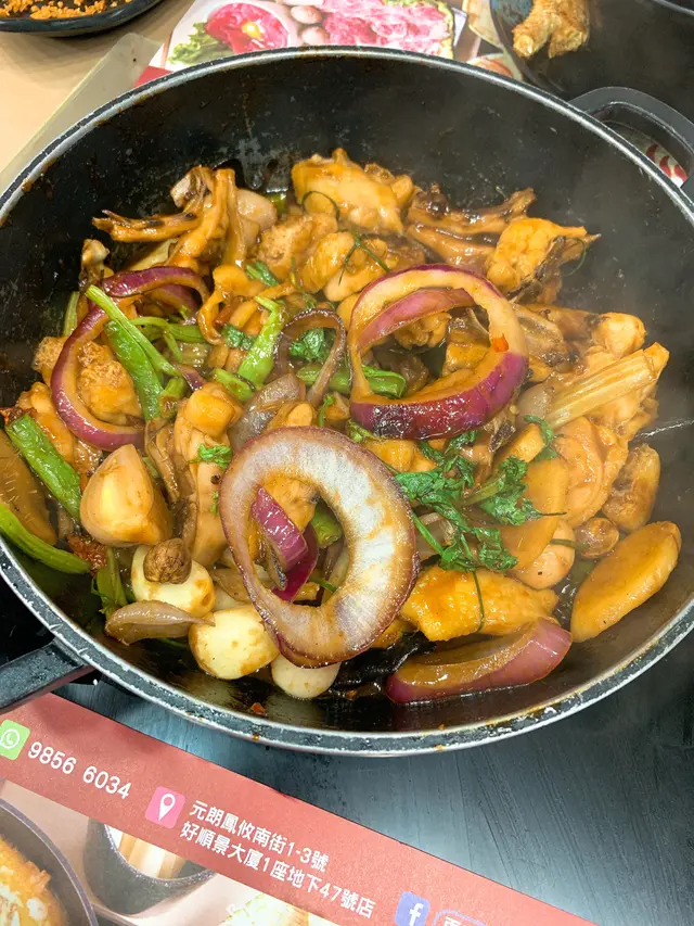 唔係地膽帶路,都唔知原來呢條巷仔有間咁正嘅雞煲🤩🤩即刻成為我嘅收藏愛店💖 個雞煲淨係叫小辣已經辣到飛起。見到仲有變態辣,唔知有冇人真係會挑戰🤣🤣🔥招牌雞煲🐓(半隻)$198黎到煮滾後店員會幫手兜3次,兜完先夠熟。揀左小辣,淨係聞到已經覺得好辣!呢到嘅辣度比出面嘅高一級,小辣已經去到出面中辣程度。半隻雞都有唔少雞件,好厚肉,醬汁濃香惹味👍🏻👍🏻冬天食應該仲正🔥安格斯牛小排(例)$168安格斯口感較薄,花紋比例均勻,放落湯底掛汁入味🔥即叫即炸脆響鈴$42見到咁大份都嚇一跳,比平時食嘅響鈴大件兩倍,金黃薄脆🔥瀑布芝心牛丸(半份)$48一咬落去啲流心芝士🧀️爆漿咁爆出黎!要小心啲食🤪牛丸爽口彈牙,超正!🔥蜜椒薯仔牛柳粒$78見到寫住鎮店之選,就一於試下。蜜糖包覆住嘅薯仔粒🥔脆邊又香甜。牛柳粒軟腍,頗為下飯🔥椒鹽粟米🌽$58咸咸甜甜,粟米肉外脆內嫩🔥珍寶凍檸茶🍋$38大大杯仲要無冰,但又夠凍,辣住食雞煲飲超爽!!🔥醬介🍶$14/位食完即刻想再來一煲,辣得好過癮!…查看更多