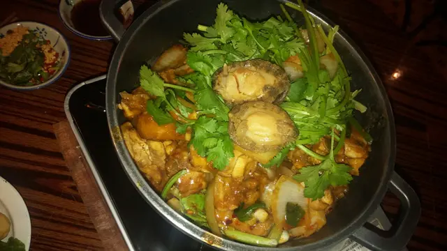 朋友見這裡裝修有特色,故意訂了座來嘗嘗。餐廳走懷舊風,都是老香港的物件和模樣。也因為訂座,所以能吃到招牌鮑魚麻辣雞煲。鮑魚按人頭上,所以訂座要確實人數哦!麻辣倒沒什麼辣。至於火鍋,我們點了香茜皮蛋湯底,以為會有好像清湯一樣,怎知味道挺濃的。我個人不怕香茜的味道,所以這個湯底不難喝的。但有朋友表示湯底香茜太濃烈,所以還請考慮清楚才決定。否則應該吃不到太多。點了炸魚皮,但很碎,所以不建議。放下去根本夾不回來。火鍋最後會送上特色甜點。其實也是玩懷舊的,不過略嫌難合所有人口味,加上一大碗上,較難分配。總結:餐廳賣環境可以,食物則普遍。…查看更多