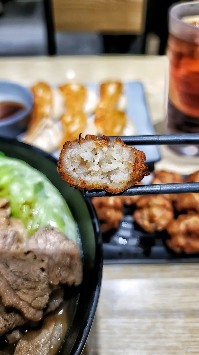 呢排依然喺深水埗區工作,但天氣依然驟晴驟雨同人生一樣變幻莫測,工程都找差不多完啦真係開心得黎又唔捨得,始終完成工程都係一件完滿嘅事,所以呢排除左工作外嘅時間都喺附近搵下有無好嘢食。咁啱今日又俾我搵到一間性價比高嘅餐廳。地點位置於基隆街,睇個門面係間小店餐廳名叫做聚來車仔麵,明顯地主力都係食車仔麵而且都見到有同好多明星合照,咁今日就試下呢一間啦~鋪頭入面有好幾張枱, 環境衛生都好乾淨舒服,兩邊牆身都貼滿晒食物同埋招牌菜,充滿懷舊氣息感覺都幾溫暖。呢間舖頭嘅賣點係食車仔麵,咁我當然要試下佢啦,餐牌除左車仔麵外仲有咖哩飯同埋其他小食, 諗咗一陣間最後要左一個四餸車仔麵:有豬紅、牛腩、雞翼尖同埋蘿蔔,配合油麵同埋沙嗲汁呢啲都係經典嘅車仔麵餸菜,之後仲要左份招牌鮮炸肉丸同埋一杯凍檸茶,咁就夠我下午茶慢慢嘆~~~等咗幾分鐘左右車仔麵同埋凍檸茶都上枱啦~~~ 賣相擺盤相當精緻,每一款餸菜都分門別類,打完卡之後就即時趁熱食,佢嘅豬紅四四方方一啖一口,非常嫩滑有口感;雞翼尖辣辣地配合沙爹汁,慢慢啜晒啲肉真係好惹味;蘿蔔係清湯煮口感非常好,好入味完全沒有渣;牛腩大大件炆煮時間長好入味,入口咬開一絲絲質素好高;再配合油麵彈牙爽口,整碗麵配搭得好好。跟手到小食啦,招牌鮮炸肉丸上枱時候非常熱咬開時好燙口,入面有飽滿嘅肉碎同埋洋蔥,口感新鮮多汁果然係招牌貨。食完咁高質嘅嘢點樣都要飲返杯凍檸茶消暑,佢杯凍檸茶夠大杯有幾塊檸檬一啲都唔吝嗇,甜度適中入口透心涼又解渴,質素高又夠凍。一碗四餸車仔麵再加一碟招牌小食,再整多一杯凍飲埋單都係$100蚊左右,味道質素高性價比又合理,果然理解好多明星幫襯,今次就當係深水埗區餞別嘅一餐~~~ …查看更多