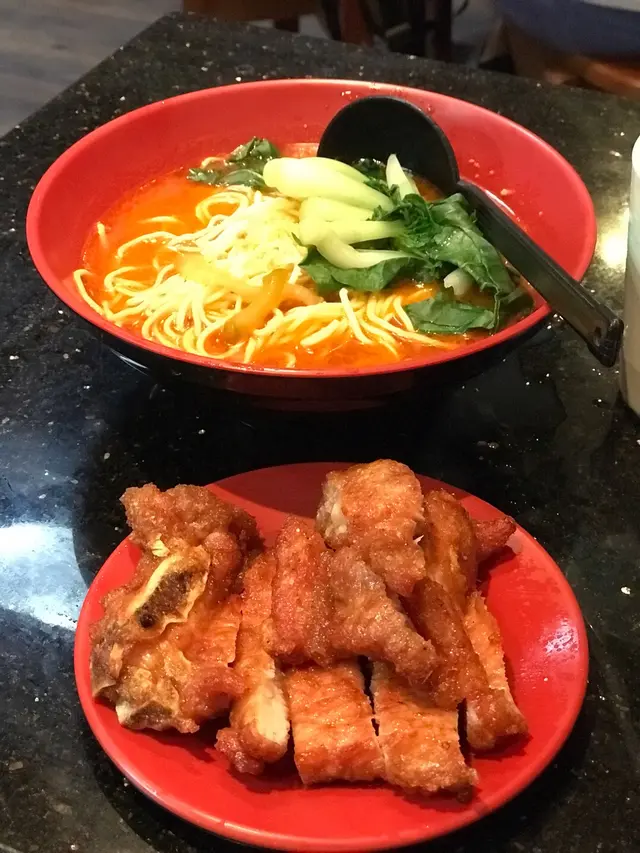 排骨擔擔麵 美*食家等級42018-11-13406 瀏覽 關注 一心諗住由炮台山行去銅鑼灣食野,行到天后時已經肚餓,最後都係留番天后覓食。本來想食刺身和壽司,但一個人吃不到多少⋯最後都係去捃麵食算了⋯再來這家古舊的擔擔麵小店,印象吃過一次,好不好味已記不起⋯應該不會差!一眼睇晒有咩食,我個人好悶,食開果樣唔會太想轉,所以⋯今次諗都唔使諗,叫了排骨擔擔麵排骨擔擔麵還附送豆漿一杯(合共$57)個人較喜歡濃郁一點的花生麻香,所以另外要求加重一點,味道中規中矩,湯底好夠熱,麵條是幼身的,可惜麵條不算太掛汁排骨即是豬扒,即叫即炸熱辣辣,肉質鬆軟,份量都好足夠,吃時把肉浸一浸湯會更好吃!若然單點一個擔擔麵,價錢就係$38…查看更多+ 2以上食評乃用戶個人意見 , 並不代表OpenRice之觀點。讚好分享排骨擔擔麵 順豐排骨麵 https://s.openrice.com/QrbT0ZW4n00檢舉 張貼 評分3味道3環境2服務2衛生3抵食用餐日期2018-11-12用餐途徑堂食人均消費$57 (晚餐)