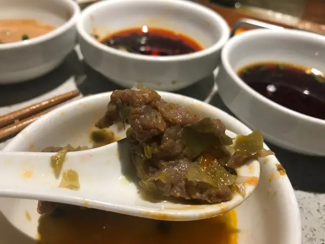 撈派滑牛肉(半份)$49調味過嘅牛肉, 勁嫩滑, 但又不失肉嘅味道。 放蕃茄味嘅湯好夾!👍👍西班牙豚肉 (半份)$84薄切好有肉味, 不肥不瘦。撈派豆花(半)34有自己秘製嘅醬料。 有啲似蜂巢豆腐,但更綿更滑,配上秘製醬汁, 帶少少麻辣同麵醬味, 好過隱好有特色。