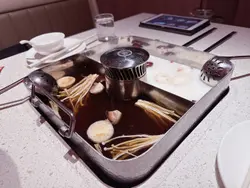 聽過大名多次,今晚才首次品嚐,據說以服務周到為賣點,果然名不虛傳!我們由一位兼職研究生貼心招待,雖然忙碌,她經常在左近,察看我們的需要,倒湯加水,清理嘌呤,細心解說點菜的問題,送上自助區的免費小吃,態度殷勤是重點,抱歉的說,在香港非常難得!海底鍋集團訓練有素,題外話,怪不得股票也受歡迎!到埗後,服務員領位到獨立間隔卡位,所有客人皆有私隱,送上平板電腦點菜。首先,點選火鍋湯底,然後可以慢慢揀其他食物。免費小吃在自助調味料區有四款小食,魚皮、螺片、西瓜及棗,不過無需動手,服務員替我們各取一些,自動送上。除此以外,還有糖水一碗,估計是杞子桃膠,微甜,清涼可口。調味料豐富多元,各種調味料齊備,每人收費$18,但亦可以選擇唔需要,費用可免。這方面我覺得很窩心,因為一般我都唔需要,只要食物新鮮,我更喜歡清淡原味,而且湯底已經有香濃的味道。胡椒豬肚雞湯及菌湯火鍋 $158說時遲那時快,還在點菜期間已經送上火鍋湯底,我們選了雙拼,因為價錢更實惠,應該因為單拼湯底材料更有份量的原因。胡椒豬肚雞湯,奶黃色澤,濃郁味香,個人口味如果胡椒重些更好,豬肚及雞件份量不少,細細粒的雞件,方便進食。服務員送上一碗碎牛肉,然後替我們倒下胡椒雞湯,先來一碗濃郁牛肉湯,打開味蕾。菌湯清香,內有不少菇菌,記得先吃。內蒙草原羔羊肉 $148懂得吃羊肉的人會知道,內蒙及新疆的吃草的羊,羊肉其實是沒有羶味的,肥瘦適中,切得薄,份量十足。小青龍 $298店名海底撈,新鮮海鮮同樣是賣點,小青龍送上來鬚腳還在動!已經預先設成五件,肉厚結實,二人分享正好淺嚐,我覺得配豬肚濃湯合拍。要求之下服務員替我們把龍蝦頭再剪細。撈派黑豆花 $48黑豆花更健康,而且比較少吃,最開心配一碗辣醬,味道相當好,更加令我覺得不點調味料的決定正確。如一般豆腐的質感,蘸些辣醬非常合拍。蓮藕 $36菠菜 $36蔬菜方面就點了蓮藕及菠菜,清洗乾淨,非常新鮮。尚有一招牌,手工拉麵是在面前表演的,幸運地,旁桌客人點選了,我們可以欣賞,今晚吃飽了,下次來絕不放過。最後還有雪糕糯米糍及薄荷糖。整體滿意,價錢公道,值得重訪。 #海底撈火鍋宴聚 #尖沙咀 #川菜 #四川 #火鍋…查看更多