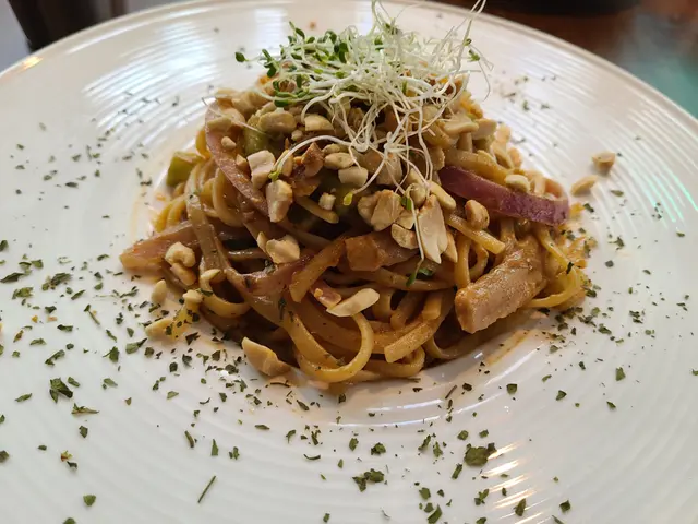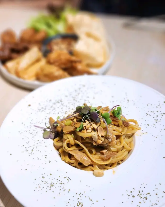 餐廳:本原純素地點:中環威靈頓街菜式:素食餐牌:平日12-5有午餐,主食6選1,加$38可升級套餐。擔擔炒意粉 $118擔擔炒意粉都好大兜,係炒得煙韌有口感嘅扁意粉加有辣辣哋嘅醬汁,好惹味。配料有新肉絲,洋蔥,爽脆西蘭花莖粒,好多脆口花生,面頭有少少菜苗。特別在新肉絲口感真係好似肉絲。扁意粉份量夠多,算係多配料,不過菜量唔多。落單比錢之後有個鐘比你,鐘響之後自己去攞野食,食完自己收餐具,呢個價錢都唔平wor。…查看更多