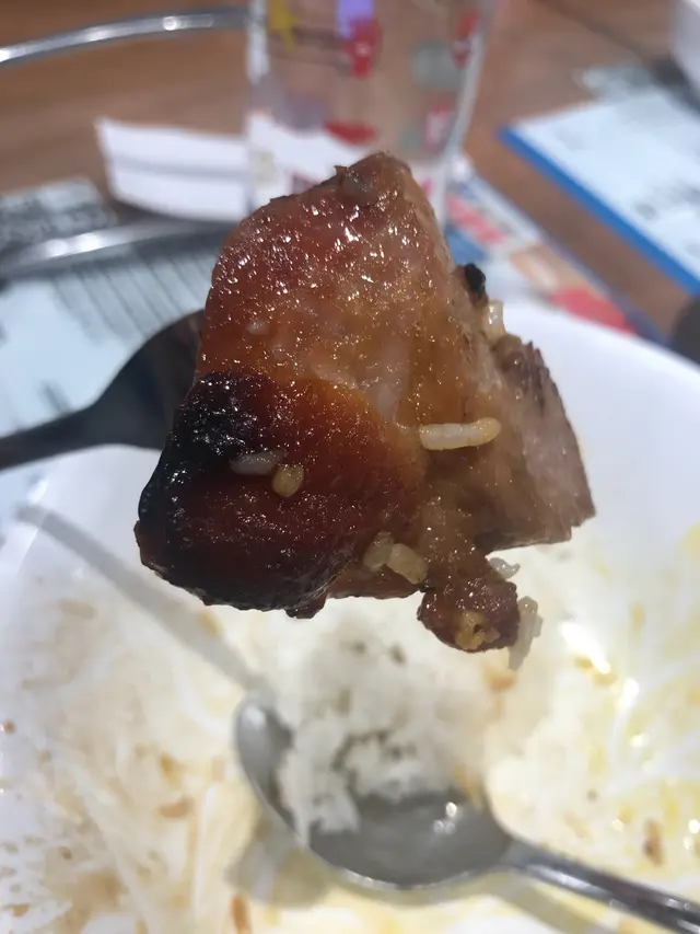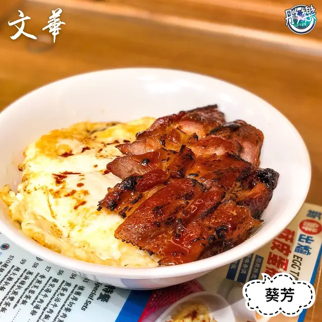 週日老婆問去邊食晏我就提議食文華,唔係文華東方酒店,係「文華冰室」至真,嘻嘻!黎到文華門只係正午一點,條人龍有十幾人咁長,等左約十分鐘就有位,我柯打左兩碗「黯然銷魂飯」即係叉燒煎雙太陽蛋飯!將星爺「食神」電影橋段入面的食品帶回現實,係咪真係咁把炮?碗飯賣相唔錯,文華秘制叉燒好大舊,同燒味鋪一塊塊叉燒好唔同,一啖咬落去居然冇令家燕姐流眼淚的洋蔥味,豬肉用左「半肥瘦」梅頭肉,脂肪同肌肉比例岩岩好,有𡁻頭,絕對係誠意之作!一篤穿隻太陽蛋,入面嘅蛋黃汁慢慢流入個甜豉油飯度,令到瘦長的絲苗米更綿滑。倒覺得文華呢碗黯然銷魂飯味更似情與義值千金的「雞姐」對潦倒的史提芬周施以「一飯之恩」果碗叉燒蛋飯。將電影入要經典食品帶回現實令人份外親切,畢竟「星爺」的電影絕對係港人集體回憶!呢度仲有懷舊特飲鮮奶溝忌廉,值得一試,難怪咁多人扶老攜幼排曬長龍都要黎幫襯。