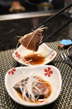 和牛和牛可以自選熟度並配以蒜片、芥末或岩鹽,五成熟度恰如其份,肉質軟嫩,油香豐腴而又不失肉味,簡單加上岩鹽最能體現原汁原味。