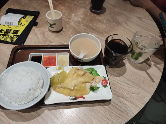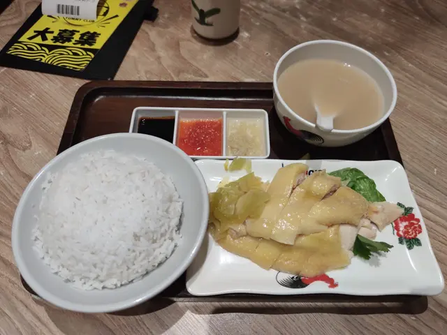 聽同事講呢間海南雞飯幾好食,於是就同左佢嚟撐格腳😂呢到嘅環境色彩好繽紛,有種新潮嘅感覺🌌新加坡無骨海南雞飯 $68🌌我同同事兩個人都係嗌呢個海南雞飯,套餐包飲品,黃油飯內有少許香茅味道,食落更加之香,例湯唔錯,無味精的感覺無骨海南雞旁邊有少少酸菜,可以先食作開胃,而醬汁有3款,可以自己混合調配,雞唔油膩,都算嫩滑,唔錯👍🏻🌠 香茅煎豬頸肉 +$20 🌠香茅豬頸肉薄薄一片,煎得非常香脆, 香茅味道突出,推介👏🏻🎇 馬拉盞炒通菜 +$30🎇馬拉盞炒通菜分量都幾多,而且好惹味,蒜香味濃, 熱辣辣上枱,營造出啫啫嘅感覺,都好值得加配🎆 恐龍美祿 +$18🎆美祿喺茶餐廳通常比較少見, 多數見到嘅都係朱古力,而呢個恐龍美祿上面有一層美祿粉及少許棉花糖, 用匙羹就咁食真係別有一番風味😁以前細細個飲鮮奶會係上面鋪一層美祿粉,效果同呢杯特飲差唔多😋總括而言, 呢個午市套餐都好滿足, 除咗有套餐之外,仲有唔同小食加配,味道方面都唔錯🤘🏻…查看更多