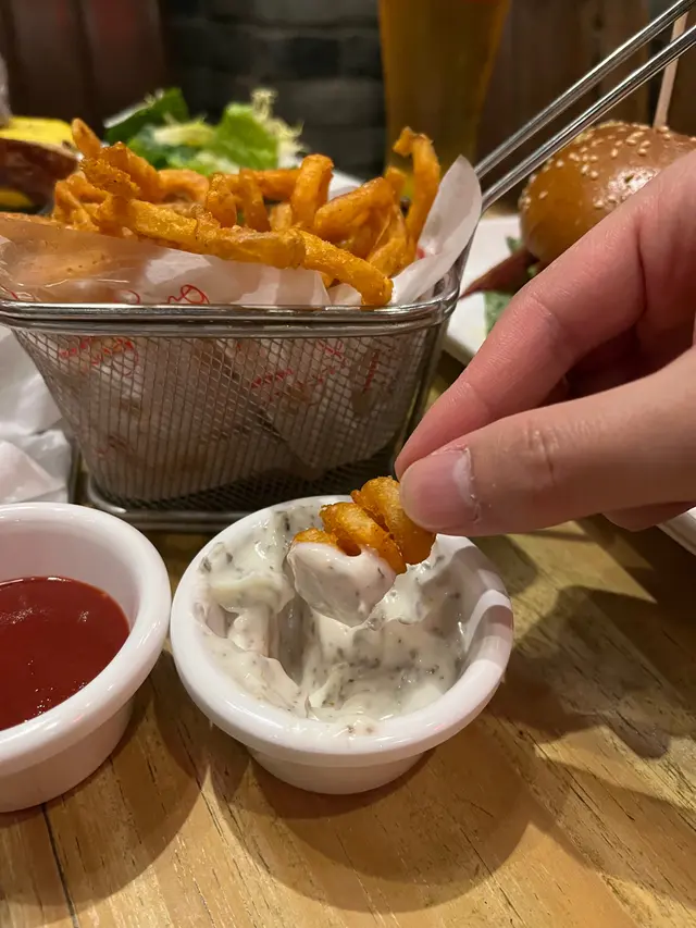 嗰日係fashion walk嘅食街覓食 見到呢間漢堡店有$39杯生啤 就即刻去試下🍻 天氣開始轉涼 坐出面都超級舒服 亦都非常適合吸煙人士🙂↕️|雙層芝士牛肉漢堡 Double Decker🍔就咁睇賣相已經見到兩塊牛肉漢堡超級厚 啲芝士完全溶化晒😍 成個漢堡大到基本上要逐層食 而且兩個人一人一半再加個薯條都已經好夠飽🤭 牛肉漢堡食落牛肉味非常濃郁 再帶啲牛油嘅香味同油脂 超級邪惡🥹 有咬口之餘好juicy🫶🏻 另外仲有蕃茄同生菜等等 令到成個漢堡冇咁膩~ 個包本身都有少少外脆內軟 好正🤤|香脆鱈魚柳漢堡 Hoki Fish Burger🍔一樣都係有溶化晒嘅芝士 蕃茄同埋生菜🥬 呢款相對整體冇咁膩🙈 香脆鱈魚柳一共有兩塊 咬落去非常脆口 新鮮即炸嘅關係 入面係咁冒煙出嚟♨️ 魚柳嘅肉都算扎實得嚟帶點滑嫩 亦都食到有少少嘅魚味🐟 同平時嘅魚柳包一樣 都係配咗個他他醬 所以都幾夾😆|旋風薯條 Twister Fries 🍟薯條雖然冇乜特別嘅驚喜 但本人最鍾意食扭扭薯條🤭 都係即炸嘅關係 所以都覺得好好食🤣 而且薯條嘅定價嚟講都算抵食‼️|飲品🥤凍荔枝冰茶正正常常 飲落唔似係syrup嗰種死甜 不過荔枝味整體都係比較淡 食漢堡嚟講適合解膩😗生啤都夠凍同埋夠氣 大大杯真係好抵飲🍻…查看更多