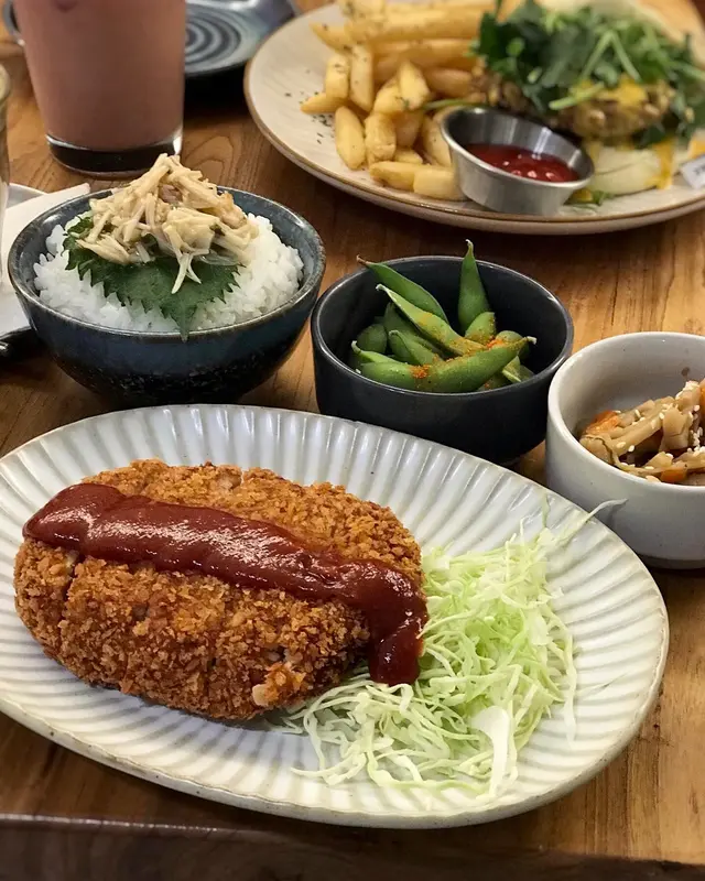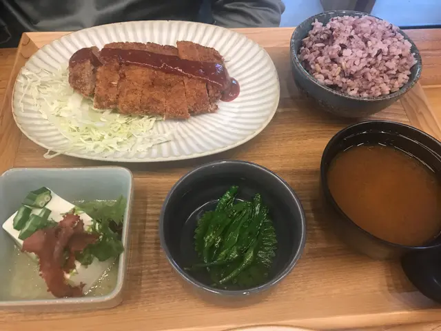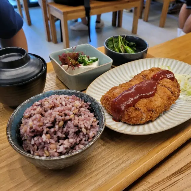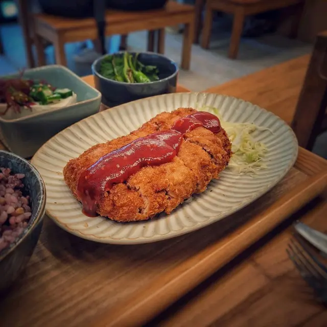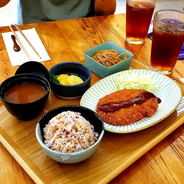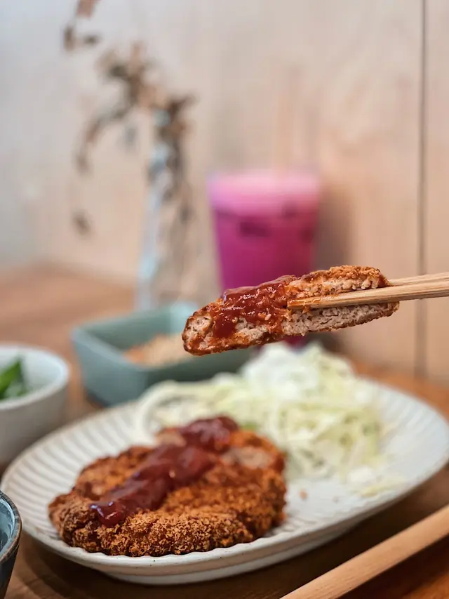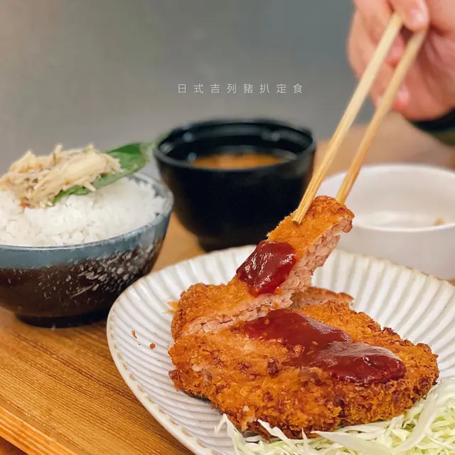 日式吉列豬扒定食之前去其他分店食過吉列豬扒都唔錯見到紅磡分店有呢個定食就試下新嘢!豬扒用新豬肉製成炸得好脆 唔會太油膩味道同口感都好似真正炸豬扒咁雖然冇咗浸肉香但調味都好唔錯🤤好juicy!仲加咗啲茄汁係上面配菜有蓮藕 蕃茄漬 味噌湯酸酸地夠清新減低咗油膩感飯裡面仲特別加咗梅子金菇漬第一次食醃金菇 酸酸甜甜好有趣🤣