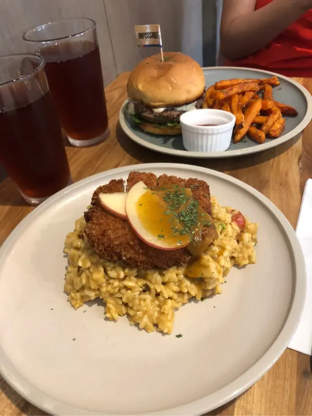 平日下午2點到,等了10分鐘就有位 上菜速度:快 服務態度和速度:好+快👍🏻食物質素:幾好,之前食過幾次新豬肉都覺得好麻麻,但今次叫左兩個新豬肉既dish都覺得幾好食 不可能漢堡包:個包有烘過,外脆內軟👍🏻 新豬肉漢堡加半融芝士幾好食👍🏻仲有洋蔥同火箭菜中和返,食落唔太膩👍🏻番薯條:平日唔太仲意食番薯條既我都覺得今次呢個幾好,番薯條外脆內又軟又甜👍🏻日式咖喱吉列豬扒意大利飯:新豬肉吉列豬扒好食👍🏻d 菇都好大粒👍🏻 仲有兩片蘋果,同日式咖喱好夾,食落都無咁膩 圖中已是少飯份量,作為正常食量既女子,我最後都食唔晒d意大利飯😅😅 真心建議素年可以減少食物既份量,以免造成浪費🙈(因為見到其他顧客好多都會食淨/ 要打包🙈) 後記:食完之後都幾口渴(雖然已經有餐茶飲),所以都可能有d味精🙈…查看更多