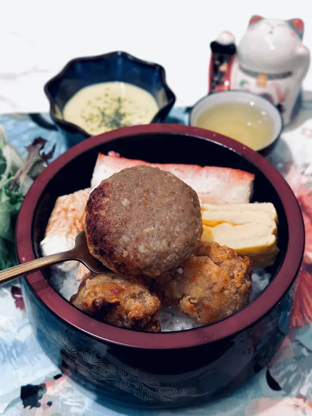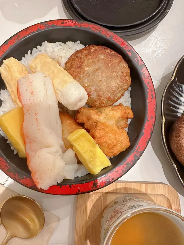 胡桃木色的窗櫥令人回想起那些年日本旅行 🧳挑了家茶室小休一會再出去血拼的回憶🎞🍁🍁🍁靠著窗櫥有棵像真的楓樹樹上住上幾隻晴天娃娃🪆好可愛呢𐤔(◍´͈ ᵕ `͈ 心情都放睛了🌞┈┈┈┈┈┈┈┈┈┈┈┈┈┈┈┈𓋜日式雜錦便當 $128 本想說 佢個樣子有點頹頹der但食落…味道一d 都唔差!玉子 竹輪 唐揚炸雞 蟹柳仲要一大條重點係… 佢塊芝心漢堡 自問影左一陣間相但起我地食既時候 佢都仲keep 到拉絲效果而佢條炸雞肉質又相當嫩滑喎無將好多好多醬加落去既佢 呢個飯對我黎講 有意想不到既質素🤓跟套餐¨̮ 沙律¨̮ 粟米忌廉湯¨̮ 麥茶 - 可選冷/熱𓋜和栗班戟 Montblanc $148Montblac 三個口味之中 選擇左栗子味內層則配搭石板街雪糕 ˖ 朱古力班戟外層鋪上滿滿幼滑栗子蓉🌰Pancake同內層雪糕口味均可自選。基於本人是個朱古力控朱古力雪糕是首選🤘🏻而班戟選了個原味朱古力味夠哂濃郁🤓 有少少偏苦添🥰石板街下有的棉花糖同果仁一次過放入口 口感豐富 而且同外層既栗子蓉味道mix 埋完全中和左🤓 everything is under control😍甜度成了剛好~😍😍😍𓋜焙茶富士山 $48飲了一口已愛上呢杯飲品了🤓店員有溫馨提示先行試了佢地面頭既奶蓋飲落係超香焙茶味!!!焙茶味好出好出~而奶蓋打得非常挺身而滑溜😌💕試完奶蓋後 記緊將佢同下層牛奶攪勻才繼續飲用🤘🏻因為緊接既係第二種層次既口感🤓𓋜 Tonic Coffee $42通常食甜品我最鍾意叫返杯美式咖啡~今次見有Tonic 同咖啡組合諗都唔諗就叫佢😃意想不到的是 佢兩個出奇地夾雖然出黎係一種偏酸既咖啡味反而令咖啡本身有既苦味都給中和掉。❣️飯後一點甜結帳後店員將貓咪公仔給我們自己揀糖果🍬來吃呢個少少一個舉動我已覺得有一絲絲甜呢🥹🫠…查看更多