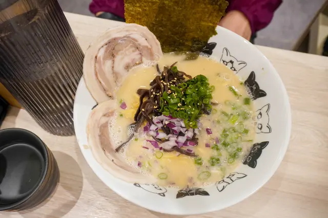 以前見到一堆生粉排隊 但今日路過見到冇乜人排就即管一嘗心態入去🍜我就叫左以下幾款😬🔻日暮拉麵 第一次試就緊係試試店鋪招牌,睇介紹係想重現以京都濃郁湯底作為賣點湯底選用豚骨湯,落單時揀左標準湯底,食落的確感受到濃湯底嘅效果,見我飲哂就知🤪想再重口味朋友可以揀選濃湯麵底建議揀粗麵,因為咁樣先掛到湯,令每一啖麵都可以沾到湯叉燒係采用炙燒方式,之前有睇各路人有講過試到凍肉味,我今次就冇嘅,可能俾人話過有改善⭐️評分:4/5🔻餃子加$35有個套餐,有餃子,唐揚雞,$45就天婦羅無骨雞翼我自己就揀咗餃子,佢個做法係王將咁樣,整到冰花出嚟餃子餡唔係去到好足,但味道搭救到,係鮮嘅豬肉味,食落亦唔油膩⭐️評分:3/5🔻溏心蛋食拉麵唔整返隻蛋就係周身唔聚財正常發揮,蛋黃冇過熟,要講特別就係蛋身有貓掌圖案⭐️評分:3/5🔻黑豆茶食完麵,飲完湯,再飲黑豆茶係幾解膩,加埋標榜0卡0糖,即刻覺得健康左先啦⭐️評分:4/5整體評分:3.5/5…查看更多