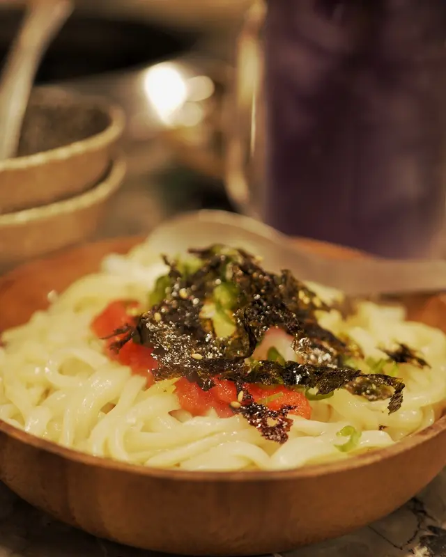 明太子撈烏冬伴月見