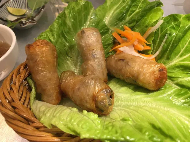 係香港食過好幾間越南菜都覺得好似唔太岩食,今日男友話想試下呢間,即管試一試,但係食完令我對越南菜有d改觀。今日食既時候都已經係下午茶時間,一人叫左一個餐同兩款小食。跟餐叫左杯咸檸檬青檸梳打,味道唔錯,不過唔記得左少甜。呢個春卷算係皮薄餡靚,上枱一陣仍然熱辣辣,炸得好脆