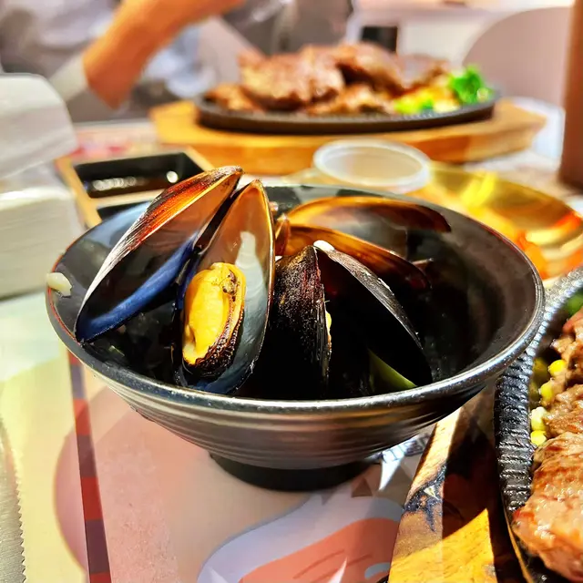 Mundi 牛柳、黑松茸炸薯條、羅宋湯、朱古力雪山$97安格斯封門柳、是日煮藍青口、芝麻醬雜菜沙律、紅棗蜜$86鐵板黑椒蜆$48好味指數:😋😋😋😋😋抵食指數:💲💲💲💲💲環境舒適:😌😌😌😌環境衛生:🧹🧹🧹🧹服務質素:💁🏼‍♀️💁🏼‍♀️💁🏼‍♀️💁🏼‍♀️推介原因:鋸扒不一定貴,昨天就跟在銅鑼灣工作的朋友放工後去了鵝頸橋附近一間餐廳鋸扒,價錢非常親民。不用$90,就有一個牛扒餐,包一份牛扒、一個前菜、一份粉麵飯薯菜、一杯飲品!Mundi 牛柳和封門柳都夠腍不韌,分別點7成和5成熟,都沒有血水。鐵板牛本身有調味料,個人覺得牛夠味。但如果不夠,可以到自助調味區取燒汁、蒜🧄茸、黑松露蒜茸等。喜歡💕配菜有車厘茄、西蘭花🥦、粟米🌽、椰菜花。幾種色配起來好好看。前菜選了羅宋湯及藍青口。羅宋湯夠濃夠足料,有椰菜、牛肉粒、紅蘿蔔🥕、洋蔥🧅。藍青口有約8隻,鮮味十足。另外選了一份黑松茸炸薯條🍟及芝麻醬雜菜沙律🥗。幼身薯條有淡淡的黑松茸味。沙律上放了些類似muesli 的穀物,跟芝麻醬意想不到地夾。朱古力雪山扼like 一流,至於紅棗蜜就好養生。個人認為食物性價比高。餐廳裝修新潮,放了一些figure,是年輕人一個不錯的聚腳點。…查看更多