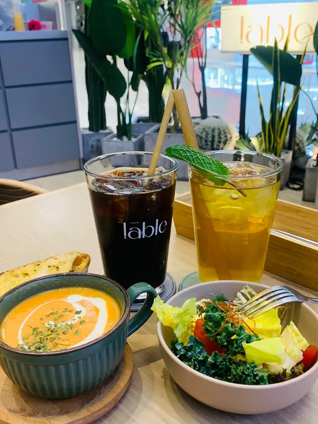 今日不用開會,一放工便約朋友吃tea一tea,其實現在都喜歡早吃晚餐,所以應該是early dinner才對。開放式的設計,環境光猛,以木系為主調,配水泥牆身,舒適簡約。地方闊落,設有一行沙發座配二至四人枱,中間有多張二至四人枱,一旁有優雅的拱型卡座,座位不少。下午茶餐有九款選擇,配一杯指定飲品,定價由$58-$68,相當經濟實惠。另可加錢追加不同食品和以半價轉飲品。最後,我倆點了兩份餐,再追加多款小食和甜品,大滿足!******************************有機蕃茄忌廉湯+蒜香酸種包 Daily Soup with Garlic Sourdough Bread(+$18)散發着陣陣酸香,刺激味蕾,馬上打開胃仔。湯身呈鮮橙色質感濃厚,味道濃郁,酸香清新,很合我口味。還配上一片煙韌的蒜香酸種包,蘸一蘸湯同吃,好吃!***************************廚師精選沙律 Chef’s Selected Salad(+$18)色彩豐富,未吃已令人胃口大開。新鮮爽脆的雜沙律菜加了爆汁的車厘茄,配上酸咪咪的醋汁,配搭簡單而美味,清新怡人。***************************墨西哥辣牛肉芝士牛油果醬卷餅 Spicy Beef Cheese Guacamole Burrito with Nachos ($68)除了有一大件卷餅外,還配有清新的沙律菜和香脆可口的墨西哥玉米片,份量十足。微脆的墨西哥餅皮捲着腍嫩的牛肉,啖啖肉,還配了清爽的沙律菜、半溶的芝士和香滑的牛油果醬,用料豐富,味道鹹香帶辣,非常美味,推介! ***************************百里香脆皮燒春雞配輕盈牛肉醬意粉 Crispy Spring Chicken with Baked Spaghetti Bolognese (Light)($78)是一份重量級的下午茶餐。熱辣辣上枱,春雞燒得皮脆肉嫩,還存有肉汁,燒得剛好,讚! 啖啖香草香,烹調入味,好味! 輕盈牛肉醬意粉散發着陣陣酸香,挺吸引!意粉面舖滿肉醬,把滿滿的意粉完完全全覆蓋着,令有嚼勁的意粉掛上香濃的肉醬,正!***************************TABLE水果茶 Table Mixed Fruit Tea (+$20/跟餐半價)賣相一流,打咭之選! 味道少甜,有茶的甘香,邊啜邊吃到清甜的蘆薈粒,當然還要吃所有的水果,有香橙乾、紅火龍果乾、蘋果、士多啤梨、藍莓,足足有五款水果,落足料,難怪果香十足。熱美式蜂蜜咖啡 Honey Americano (+$18/跟餐半價)既有咖啡香,亦有蜂蜜的甜美,甜度剛好。***************************Table 雪糕咖啡 Table Affogato (+$38/原價$52)是豐富版本。除了有一球朱古力雪糕和一杯熱咖啡外,還有一件朱古力蛋糕、棉花糖和薄荷醬,配搭富心思。把熱騰騰的香濃咖啡注入其中,雪糕慢慢溶化在熱咖啡中,兩者逐漸融合,冷熱交替,苦中帶甜,一向是最佳的組合,而朱古力蛋糕吸收了咖啡,啖啖咖啡香,滋味! 開心果朱古力蛋糕 Pistachio Chocolate Cake (+$38/原價$58)面頭舖滿開心果碎,好吸引! 共有四個層次,開心果碎、開心果慕絲、朱古力蛋糕及蛋糕底,而開心果慕絲中混入脆口的朱古力碎,口感豐富多變。蛋糕雪至非常冰凍,慕絲口感好似雪糕,特別! 如開心果味再香濃一點就更理想。----------------------------環境靚,食物都靚,還要又美味又經濟,簡直是超值好味下午茶之選。…查看更多