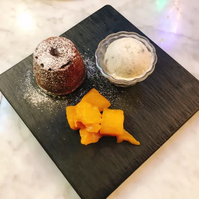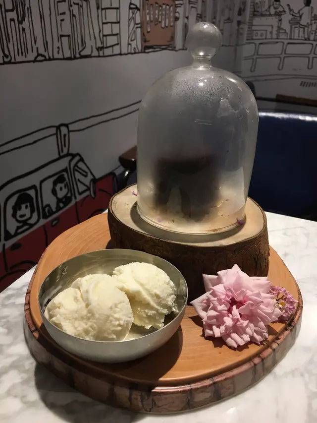 係旺角食完晚飯意猶未盡想食個甜品 經過見到呢間裝修幾新幾靚既甜品舖就入左去試下🍴呢到既選擇都幾多 睇到花多眼亂😛 揀左好耐最後都係決定食番朱古力心太軟😂 心太軟可以配一款生果 (芒果/士多啤梨/香蕉/荔枝) 同埋一球雪糕 等左15分鐘終於有得食 上碟既時候有個蓋蓋住個心太軟 打開個陣有d煙同陣陣煙燻既味道 心太軟既效果都唔錯 好多朱古力流出泥 外脆內軟 只係煙燻味太大我個人唔太鐘意🙊 整體泥講不過不失 不過價錢偏貴💰…查看更多