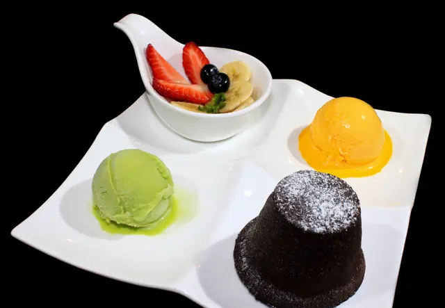 朱古力心太軟即叫即焗,配上兩球雪糕,有幾種味選擇,最後選了 芒果,朱古力。必開時朱古力漿如湧出,濃厚的朱古力不算膩,外面少少脆口入面鬆軟,兩者外脆內軟,兩種口感,唔同滋味感受配上雪糕一冷一熱,老闆仲話個朱古力漿煲自家調配,比出面濃的!