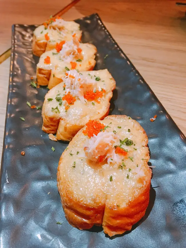 筲箕灣東大街的美食琳瑯滿目,日本餐廳卻唯數不多。街頭上有一間日式小店,出品精緻用心,極高水準!桻之燒主打日式串燒,更以時令海鮮為食材,每天從附近的魚市場搜羅新鮮魚類,鮮味十足。踏進餐廳,映入眼廉的是密密麻麻的日本酒標,貼滿牆身和天花,可見老闆是好酒之人。午餐時間來到,不用100元就能享受到豐富的早午餐,性價比很高!散叫的餐牌提供更多選擇,例如串燒﹑主食﹑蔬菜﹑海鮮等等,定價中等。值得一提的是,餐牌每頁都是日本漫畫風的插畫,細緻有趣。♢ 🍢招牌串燒拼盤 $98這個拼盤特別豐富,有鹽燒雞中翼﹑香燒黑豚六花腩﹑免治雞肉軟骨棒﹑香燒脆皮豆腐和自家製紫心蕃薯蓉,性價比高,比起散叫串燒便宜。串燒香味十足,經調味後特別惹口。我特別喜歡黑豚六花腩!平時五花腩就食得多,六花腩較為少見,不同之處在於油脂更肥美,入口滑潤,非常有口感!六花腩串燒好食得特別散叫多一串,與朋友一起分享美味!香燒脆皮豆腐也頗為特別,外層燒得酥脆,內裡卻是豆腐滑嫩的口感,頗為出色。另外餐廳自家製的紫薯蓉也誠意十足,薯蓉打得綿滑香甜,紫薯香味四溢。♢ 🥓煙肉荔枝卷 $28完美的串燒組合!燒過的煙肉片帶有濃郁的鹹香味,入口能嘗到荔枝的juicy和清甜,兩者味道配合得十分好!♢ 🦀松葉蟹多士 $98推薦必點,單看賣相已經垂涎欲滴!多士上是多得滿瀉的松葉蟹肉和蟹膏,每啖都是嫩滑濃郁的蟹味,難怪餐牌上會寫「齒頰留蟹香」!頂部還有爽脆的蟹籽,跟蟹膏味道很搭配,口感豐富!多士也有輕微烤過,香脆可口。不用100元就能食到如此鮮味十足的多士,盡見小店心思。♢ 🦐法式鮮蟹肉虎蝦烤多士 $88推薦必點!脆口的多士上是燒過的虎蝦,新鮮甘甜,配上混有蟹肉的千島醬,口感非常豐富,頗有特色!桻之燒的熱門食物「松葉蟹多士」和「法式鮮蟹肉虎蝦烤多士」味道出眾,蟹肉的鮮味餘韻無窮,很有驚喜!無論是賣相﹑味道,都是超高水準,絕對是心思小店。朋友曾光顧桻之燒多次,大讚他們的時令海鮮燒烤,例如扇貝﹑聖子,份量十足。下次再訪時必會一試!…查看更多