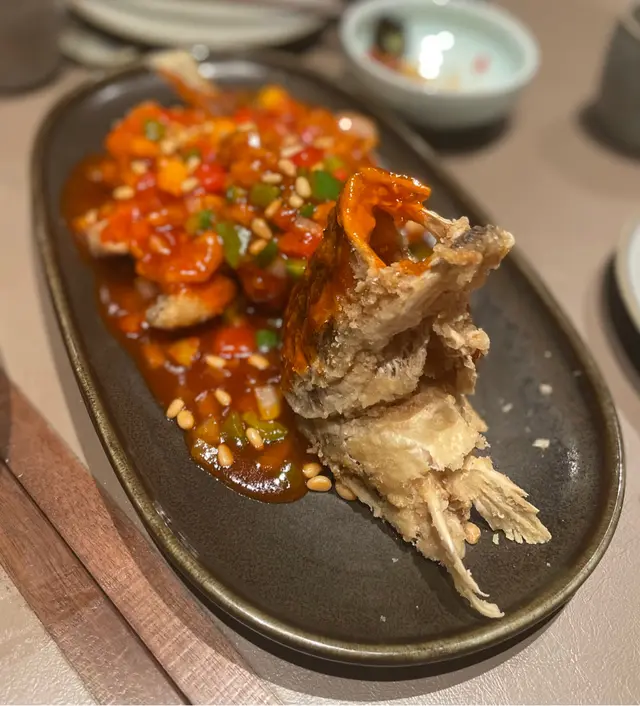 是日和親戚去了坑口東港城,帶婆婆試試家上海,一行人都未試過這間上海菜館。我們一行10人,適合的套餐有兩款12人用的,最後選了「老上海套餐」。點餐時,職員提醒我們12人用的套餐份量很多,建議我們先點6人餐,不夠吃的話再散叫亦可,我們遂聽從職員的建議而叫了6人餐 ($1,488)。淮揚五福拼盤,拼盤有女兒紅醉雞、鎮江冰官肴蹄、涼拌陳醋紅蜇頭、蘇式燻魚及四喜烤麩。醉雞滑溜兼充滿酒香,酒味香而不烈。海蜇頭冰凍爽口,與青瓜製成涼拌,味道微酸開胃。燻魚又香又入味,但好需要牙力,口感偏硬。烤麩入味,香濃帶甜,口感鬆軟。瑤柱賽螃蟹,將魚起骨拆肉後,加入蛋白和瑤柱一起炒熟,口感軟滑,仿如吃蟹肉一樣。人氣No.1煙燻脆皮雞(半隻),雞皮十分香脆,肉質嫩滑,帶點雞油,充滿煙燻香又不會太鹹!果然是人氣No.1的招牌菜,全枱人都好滿意這道菜。黃金蝦球,蝦球炸得脆口不油膩,鹹蛋黃醬份量適中,令蝦球帶點鹹香之餘又不會令人覺得太重負擔。濃湯砂鍋餛飩雞(半份),湯底味道鮮美,雲吞皮薄餡料飽滿,津白入味,雞肉滑溜。好味之選!松鼠桂魚,炸好的桂魚澆上醬汁,味道酸甜惹味,魚肉仍帶點脆口,加入松子仁及菠蘿等配料,口感豐富。濃雞汁蘿蔔,蘿蔔炆煮至軟硬適中,清甜不會起渣,加上入味的雞汁,是一道清爽的菜式。鍋塌豆腐的賣相有如紅燒豆腐,豆腐又滑又入味,帶豆香之餘,配以濃甜醬汁,將簡單的豆腐化為滋味。金牌小籠包,6人套餐只得一籠6隻,我們額外點多一籠。大大粒的小籠包外皮厚薄適中,肉餡足料,充滿湯汁,肉汁鮮甜,好吃!招牌十景揚州炒飯,簡單的配料,只有雞蛋、菜粒、叉燒及少量鮮蝦仁,飯粒炒得乾身不油膩。最後就是甜品,豆沙鍋餅賣相金黃亮麗,不會焦焦的,而且一點也不覺油膩!豆沙餡軟滑,甜度適中,是我暫時所吃過的豆沙鍋餅中為之滿意之選。用餐後,我們都對職員予以正評,不會為多賺客人的錢而要我們點未必吃得完的12人餐,添茶水也不會怠慢。加上食物質素佳,值得再光顧!…查看更多
