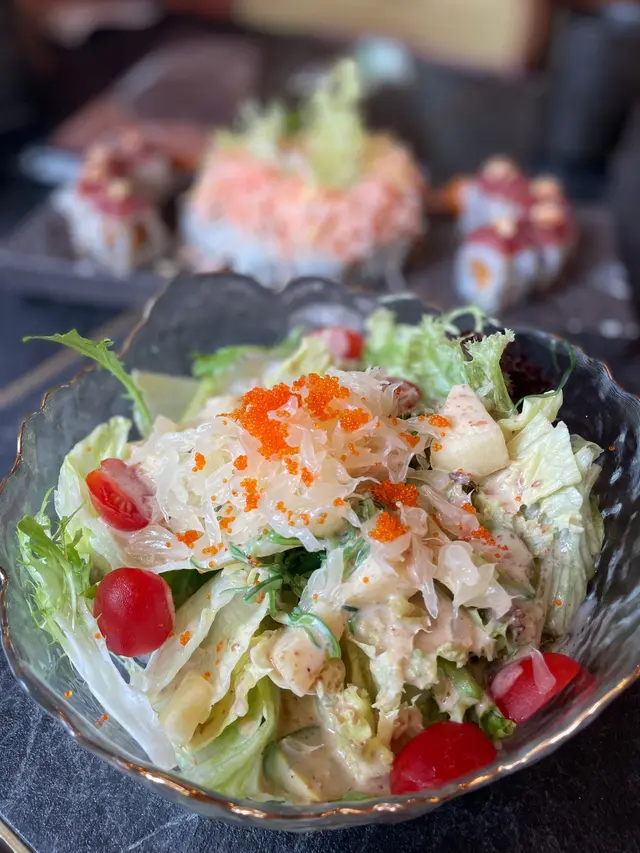 餐廳充滿日式風情,裝潢日系精緻🌸卷物尤其吸引,充滿心思創意店員服務友善親切整體而言值得推薦👍🏻🥗柚想蝦你🦐 $55沙律以柚子和甜蝦為主題,有點新意酸甜柚子、搭上軟綿甜蝦、粒粒鮮甜蟹子,味道清新鮮美伴以沙律菜、車厘茄、牛油果、蘋果、中華沙律,相當足料🍣搖滾樂 (8件) $110表面看似是普通鰻魚壽司原來在鰻魚掩蓋下是炸蝦天婦羅卷物🍤,食落令人驚喜軟綿的鰻魚配上香脆的炸蝦,口感有層次卷物製作成一口尺寸,卷物完整入口,美味完整地在口腔中爆發🤤🍣青龍卷 (4件) $55青龍卷用🥑牛油果搭上鰻魚,口感柔軟潤滑嚐到香濃的鰻魚與紫菜風味🦪清酒煮蜆 $128一窩日式清酒煮蜆,新鮮熱辣大蜆肉質鮮嫩,處理得不帶半點沙伴有白菇與洋蔥湯底品嚐出大蜆鮮甜濃味😋🐔大阪自家製炸雞 $78炸雞現叫現炸,份量十足入口十分香脆,帶點焦鹽鹹味咬落內部滿滿肉感,整體熱辣滋味🔥…查看更多