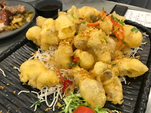 【椒鹽九肚魚】九肚魚炸到脆卜卜,炸粉比較厚身,中間的魚肉軟綿綿,真是雙重口感刺激味蕾,不過點的是喼汁,我較喜歡甜醋。