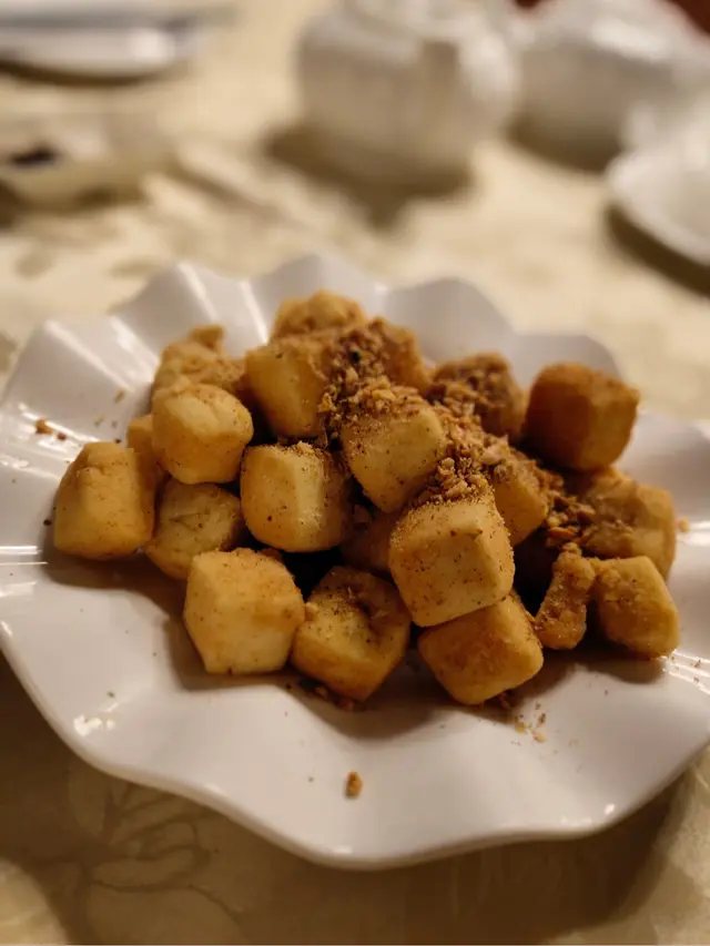 講吓啲食物先,粥底好綿,雞肉嫰滑。乳鴿好脆,拎上手仲有少少熱辣辣,記得趁熱食!椒鹽山水豆腐份量好大而且都係好脆口,不過略鹹,可能因為唔夠喼汁啦!