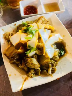 住喺慈雲山嘅fd今晚call食飯, 一行四人最啱叫餸share, 七點黎到已經坐到出樓梯, 食開都係叫返同樣嘅小菜.·潮州蠔餅 (HKD60)食打冷必嗌嘅潮州蠔餅, 蛋同蠔仔炸到脆卜卜, 薯粉一d都唔明顯勁正, cut開6塊每塊啖啖蠔仔, 足料之作!·鹵水三拼 (HKD60)好乾淨嘅大腸, 爽脆薄片墨魚, 好入味嘅豆腐, 加埋鹵水汁夠風味.·金銀蛋浸時蔬 (HKD58)平時食開金銀蛋莧菜, 今日阿姐話白菜仔靚, 配皮蛋醎蛋一樣正.·椒鹽鮮魷(HKD70)邪惡嘅炸鮮魷...外脆魷魚🦑肉爽, 薄薄嘅粉漿, 大大碟送啤酒一流.·Sonderberg 韓國🇰🇷牌子啤酒一大枝…查看更多