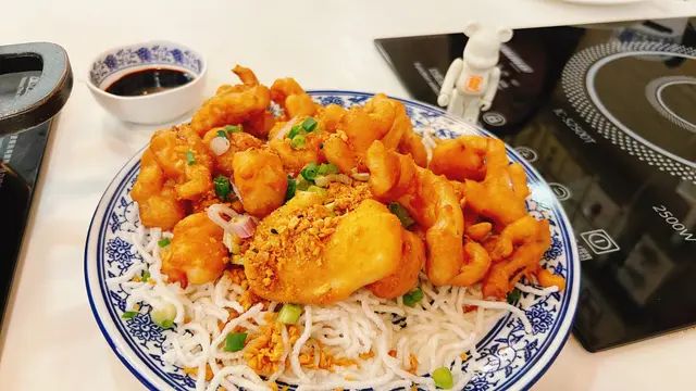 🌟香港北角新發現🌟【金樂軒】潮州菜,隱藏在繁忙街後的美味天堂🍽️!晚上9️⃣點之後都座無虛席,情侶👫三五老友都會選擇來這裡吃煲 喝啤酒 聊聊天🍲奇味田雞煲就是好吃的牛蛙煲啦!小塊牛蛙搭配微辣醬汁,暖胃又暖心❤️豆腐泡吸滿了湯汁,一口下去,滿嘴都是濃郁的鮮香,簡直是下飯神器🍚🍤黃金蝦球咸蛋黃控的福音!大蝦仁外面裹🈵咸蛋黃,外酥里嫩,每一口都是滿滿的幸福感🥰,咸香四溢 讓人忍不住連吃好幾個!🦑椒鹽鮮魷魷魚炸得恰到好處,外皮酥脆,內里鮮嫩,椒鹽的調味更是點睛之筆👀。記得一定要趁熱吃,口感最佳!🍜四川擔擔麵辣中帶麻 麻中帶香,麵條比較勁道,湯汁濃郁🔥分量hin大 一碗2-3人share都夠…查看更多