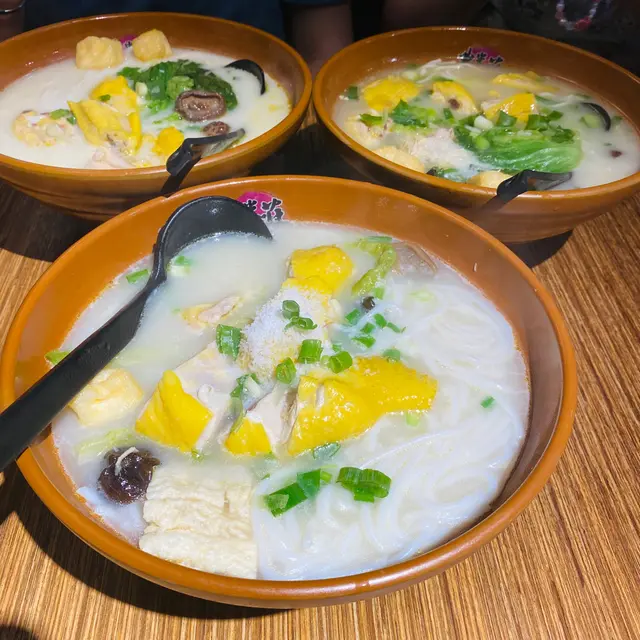 十二點幾覺得肚餓喺尖沙咀唔知食咩好經過厚福街見到門口大大個字寫住「一碗亂湯都可以飲埋嘅米線」即刻走入去試一試見到淨係米線都已經相當多選擇我哋兩個人就點左芫荽雞湯米線椰子雞湯米線同埋啲小食芫荽雞湯米線(加玉子豆腐,豬頸肉)果然個湯頭非常清香濃郁嘅雞湯配上芫荽非常之夾(芫荽味其實唔算太重)雞件亦都算嫩滑性價比相當高⭐️⭐️⭐️⭐️⭐️(5⭐️為滿分)椰子雞湯米線呢個亦都非常好味清甜嘅椰子湯同雞湯混合奶白色嘅湯底令到雞件感覺上更加滑⭐️⭐️⭐️⭐️⭐️小食方面我地點左黃金皮蛋金黃色嘅皮蛋賣相一流之餘佢嘅醬汁亦都調得相當好十分惹味⭐️⭐️⭐️⭐️⭐️最後係爆芝黑松露燒大菇呢個就無之前d菜咁出色啦芝士同黑松露都夠多但係呢兩種野都冇乜味菇燒得唔夠香唔算難食但都唔算好食⭐️⭐️⭐️加咗小食加咗咁多餸最後買單兩個人都係$200到已尖沙咀地段來講性價比都算相當高鍾意食米線嘅朋友一定要一試…查看更多