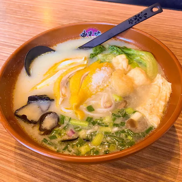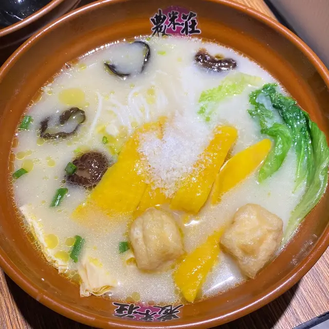 農米莊係一間主打無味精嘅雞湯米線鋪,算係清淡養生之選🤤~仲要有好多款唔同嘅雞湯,例如椰子雞湯、藥膳雞湯、花膠雞湯等等,仲有唔少比較少見嘅配搭,例如龍蝦雞湯、黃椒雞湯、泡菜雞湯等🤣 有機會都會想再試下佢嘅其他湯底呀😋•🥢 番茄龍利柳米線 $47番茄湯味道清甜,飲落番茄味好真,唔係落茄膏溝果種濃味~配料有啲豆卜、腐竹、木耳、蔥,而米線幼身彈牙,加埋番茄湯都真係幾夾😋 龍利柳原來係炸嘅,入面嘅魚肉幾厚身,炸粉都算薄,但係因為無分上,所以上枱嘅時候已經淋咗~•🥢 椰子雞湯米線 (跟農米雞件) $46椰子湯底幾甜,好香椰子味,仲有啲椰奶味(唔知係咪有加😛),有大約5件雞,算幾滑,唔肥,仲有吸湯嘅豆卜🤩•🥢 墨魚餅 $12墨魚餅係另加嘅餸,但$12先得2件細細哋嘅😟真係有啲唔抵食~ 佢係有腐皮包住果種墨魚餅,口感唔算好彈牙,入面有少許芫荽,但芫荽味唔算好濃嘅,似街市凍肉鋪買到果啲,所以下次應該就唔會加喇~…查看更多